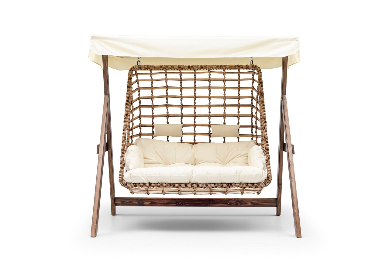Balansoar de gradina 2 locuri, Hanah Home, Girne, 190x195x150 cm, Crem