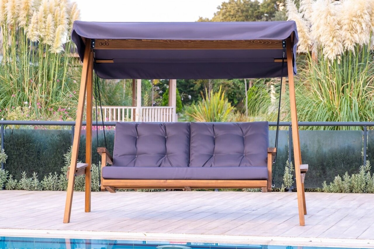 Balansoar de gradina 2 locuri, Swingo, Pera 2000, 203x116x180 cm, Cadru: 100% MOLID cu FSC®, Antracit