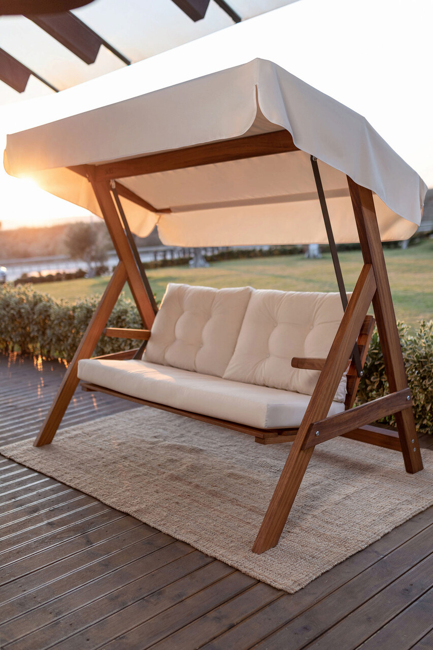 Balansoar de gradina 3 locuri, Swingo, Grand Paris 2000, Lemn, Bej natural