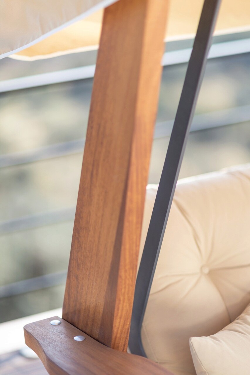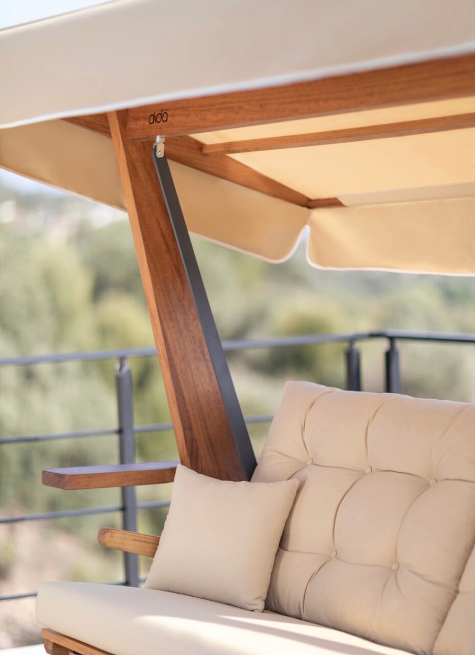 Acest balansoar de gradina cu copertina este solutia ideala pentru relaxare si confort in spatiul dvs. exterior. Fabricat din lemn de inalta calitate si finisat intr-o culoare bej eleganta, va fi cu siguranta un punct de atractie in orice gradina.
