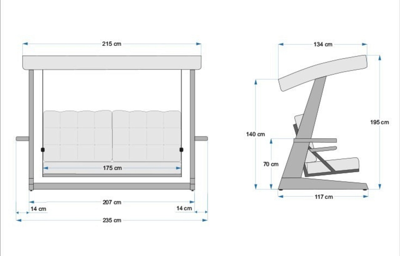 Balansoar de gradina 3 locuri, Swingo, Sia 2400, 235x134x195 cm, lemn, bej/natural