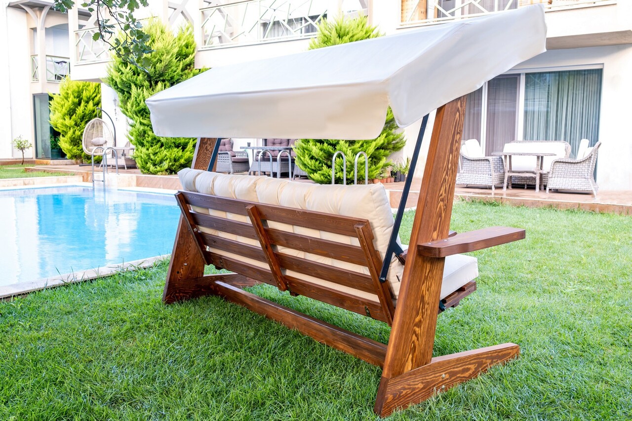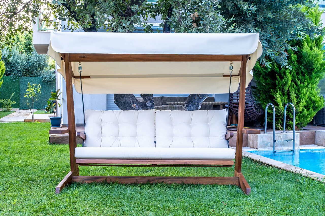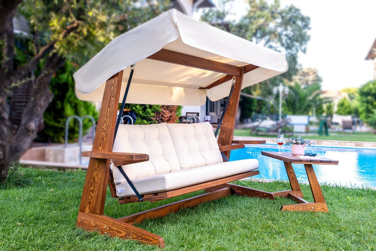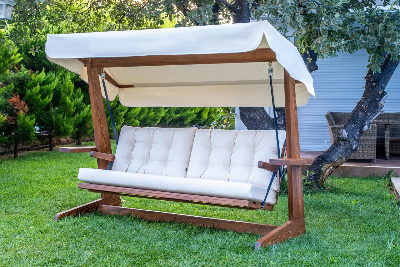 Balansoar de gradina 3 locuri, Swingo, Viva 2400, 237x100x175 cm, Cadru: 100% MID, Bej