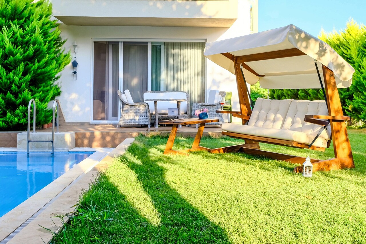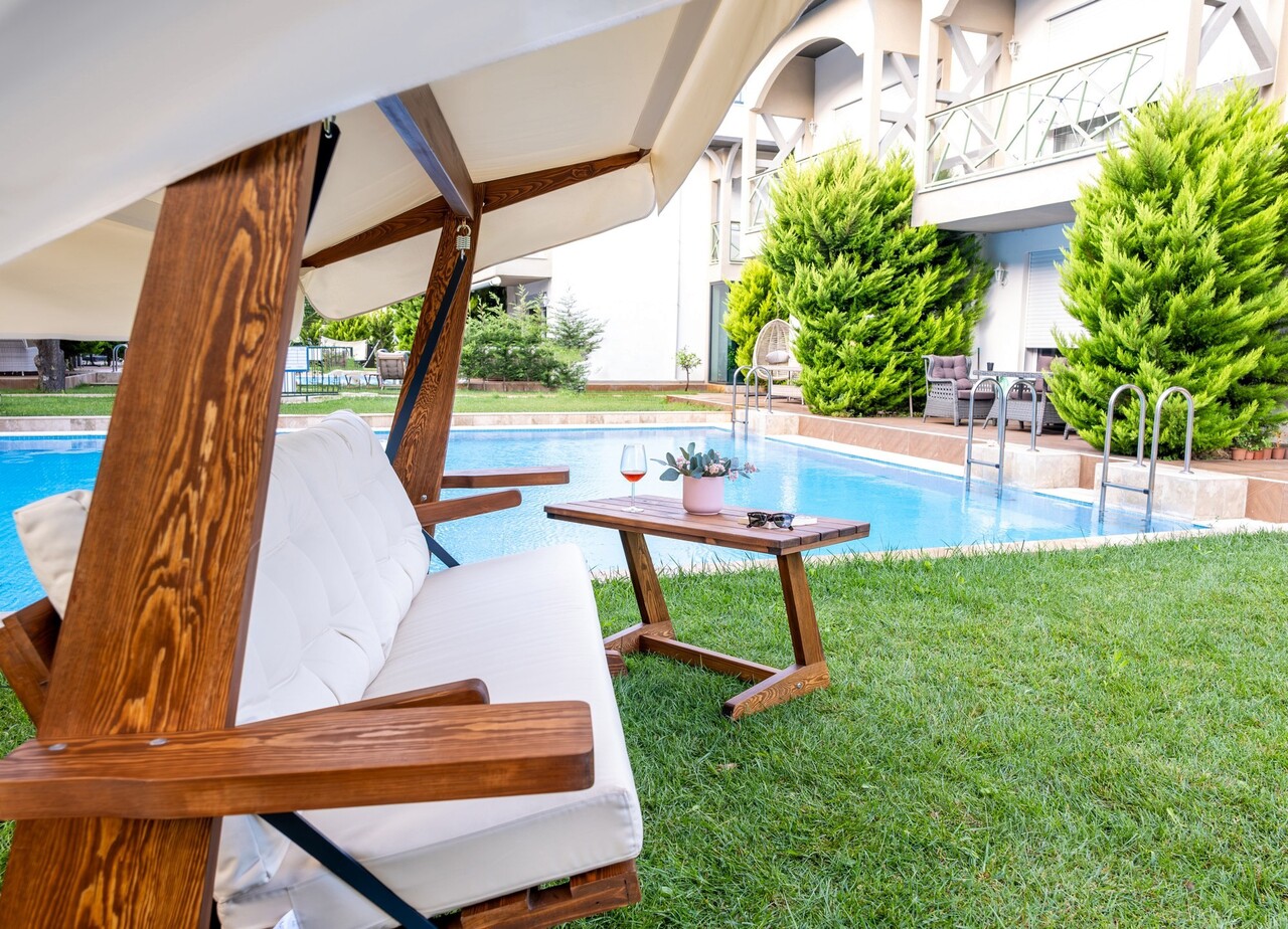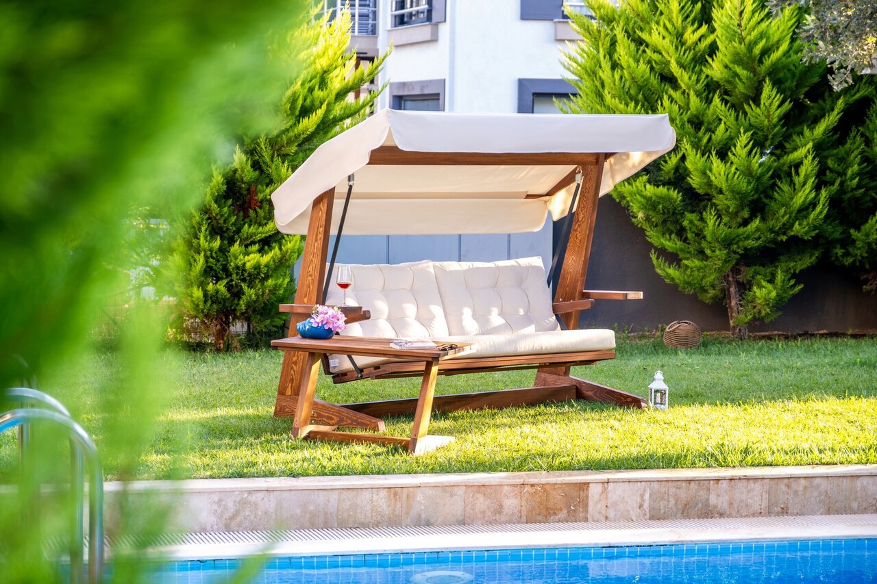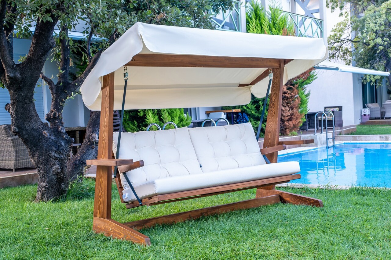 Balansoar de gradina 3 locuri, Swingo, Viva 2400, 237x100x175 cm, Cadru: 100% MID, Bej
