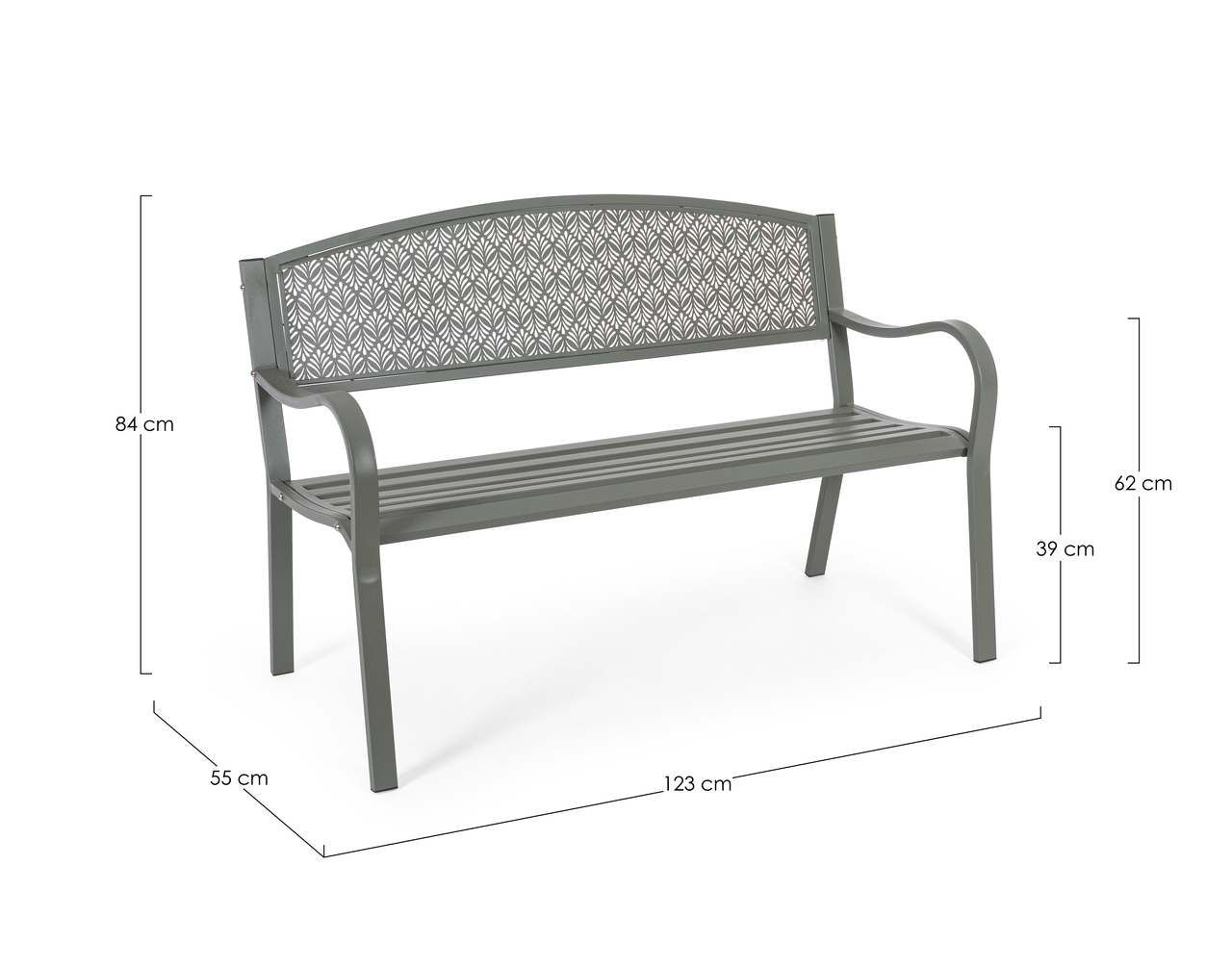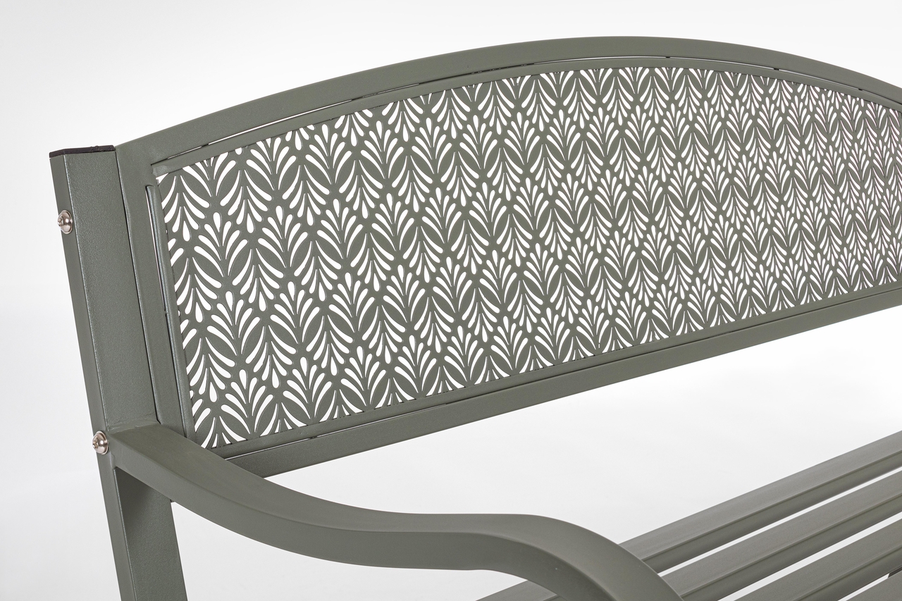 Banca pentru gradina Lizette, Bizzotto, 123 x 55 x 84 cm, otel tratat pentru exterior, oliv inchis