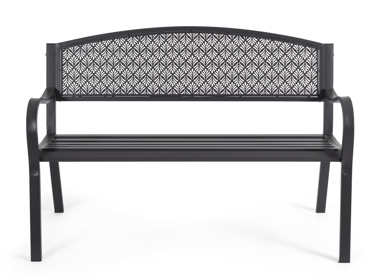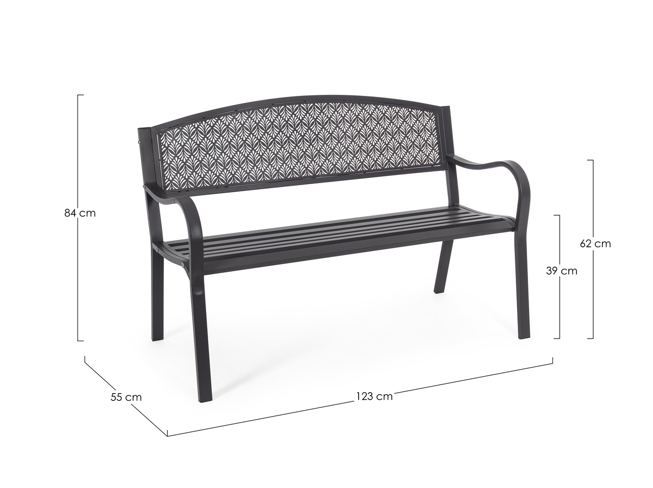 Banca pentru gradina Lizette, Bizzotto, 123 x 55 x 84 cm, otel tratat pentru exterior, gri carbune