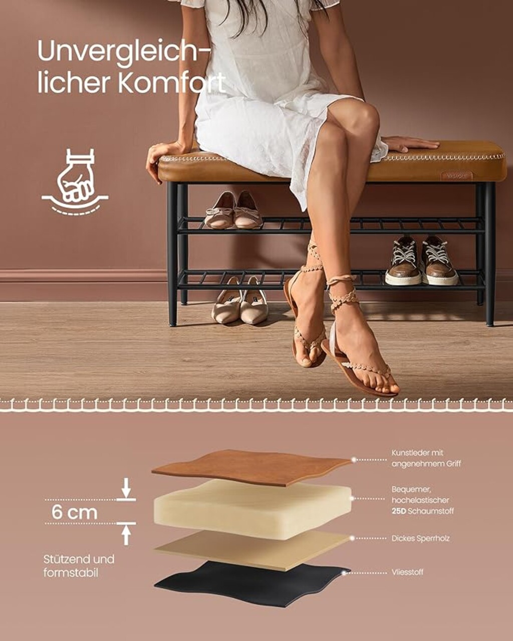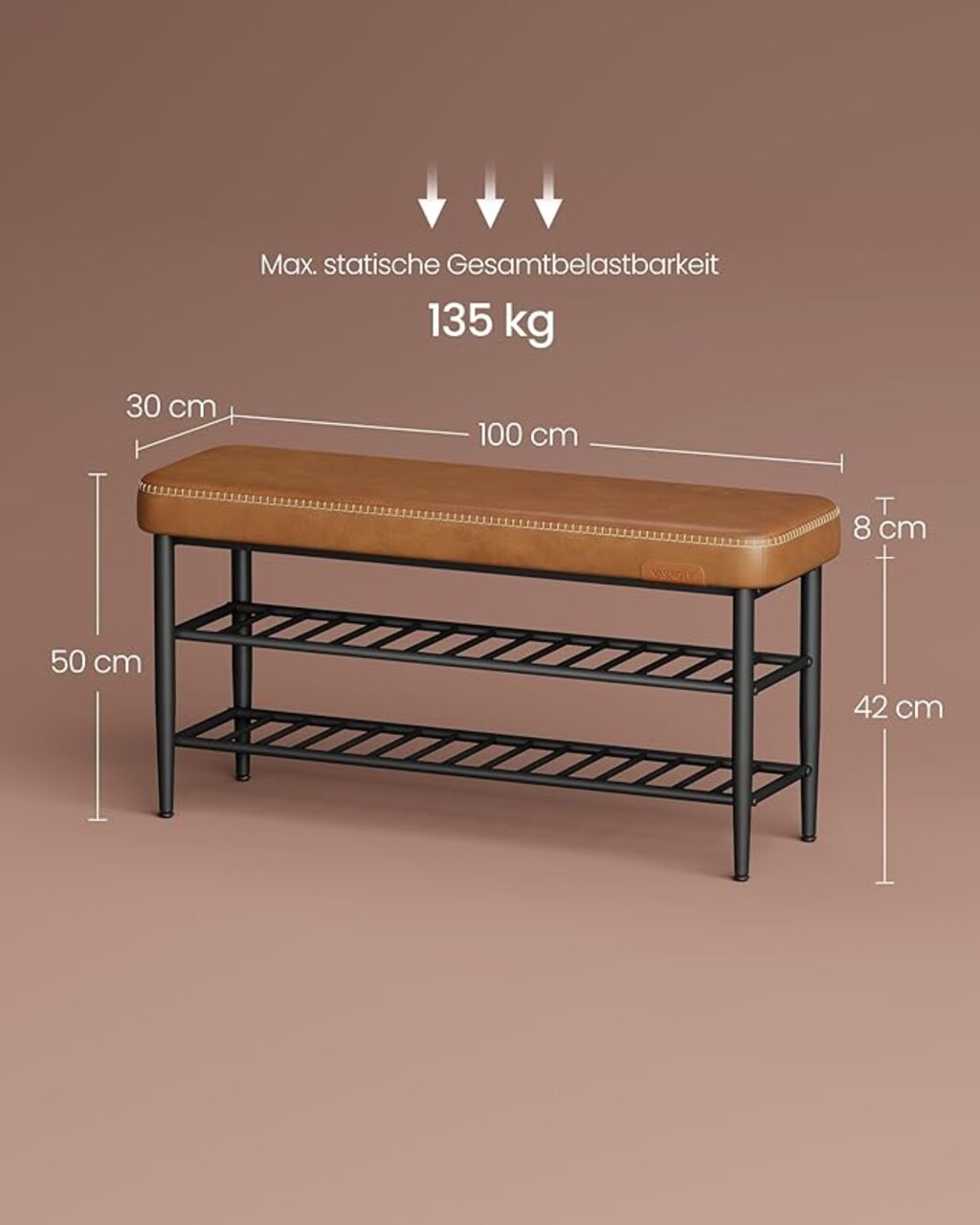 Bancheta cu pantofar Ekho, Vasagle, 100x30x50 cm, max 135 kg, otel/piele ecologica, maro