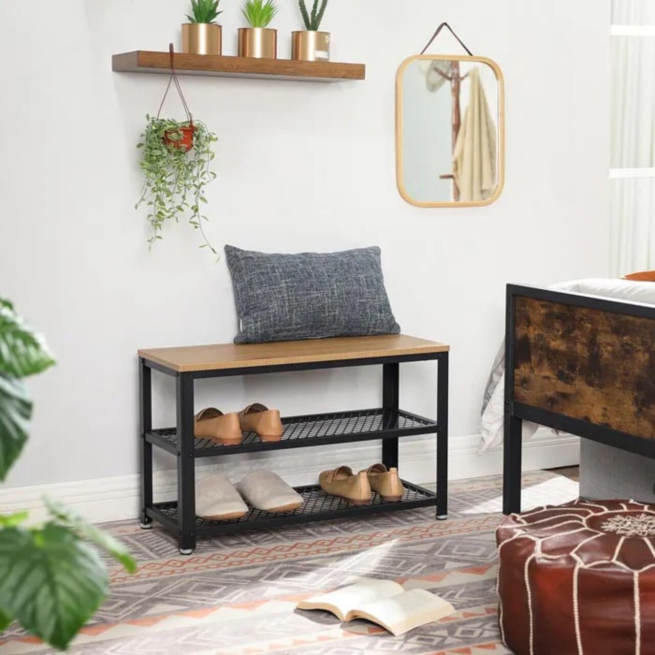 Bancheta cu pantofar Industrial Mesh, Vasagle, 73x30x45 cm, max 90 kg, PAL/otel, natural/negru