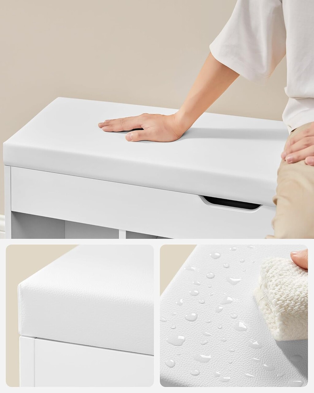 Bancheta cu pantofar si spatiu de depozitare, Vasagle, 100x30x44 cm, max 150 kg, piele ecologica, alb