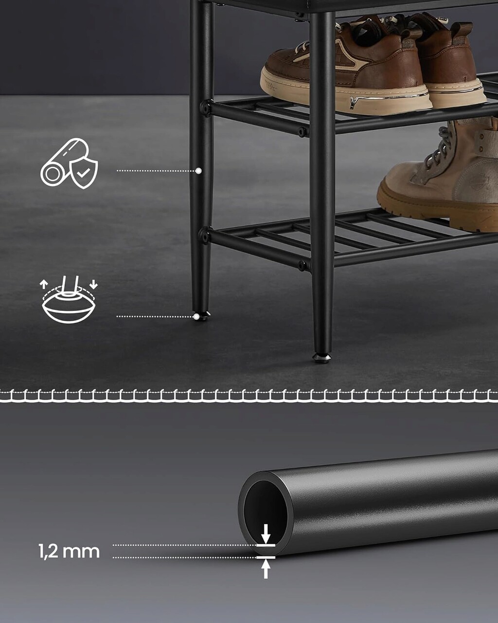 Bancheta cu pantofar Vasagle Ekho, 80 x 30 x 50 cm, max 135 kg, piele ecologica/otel, negru ink