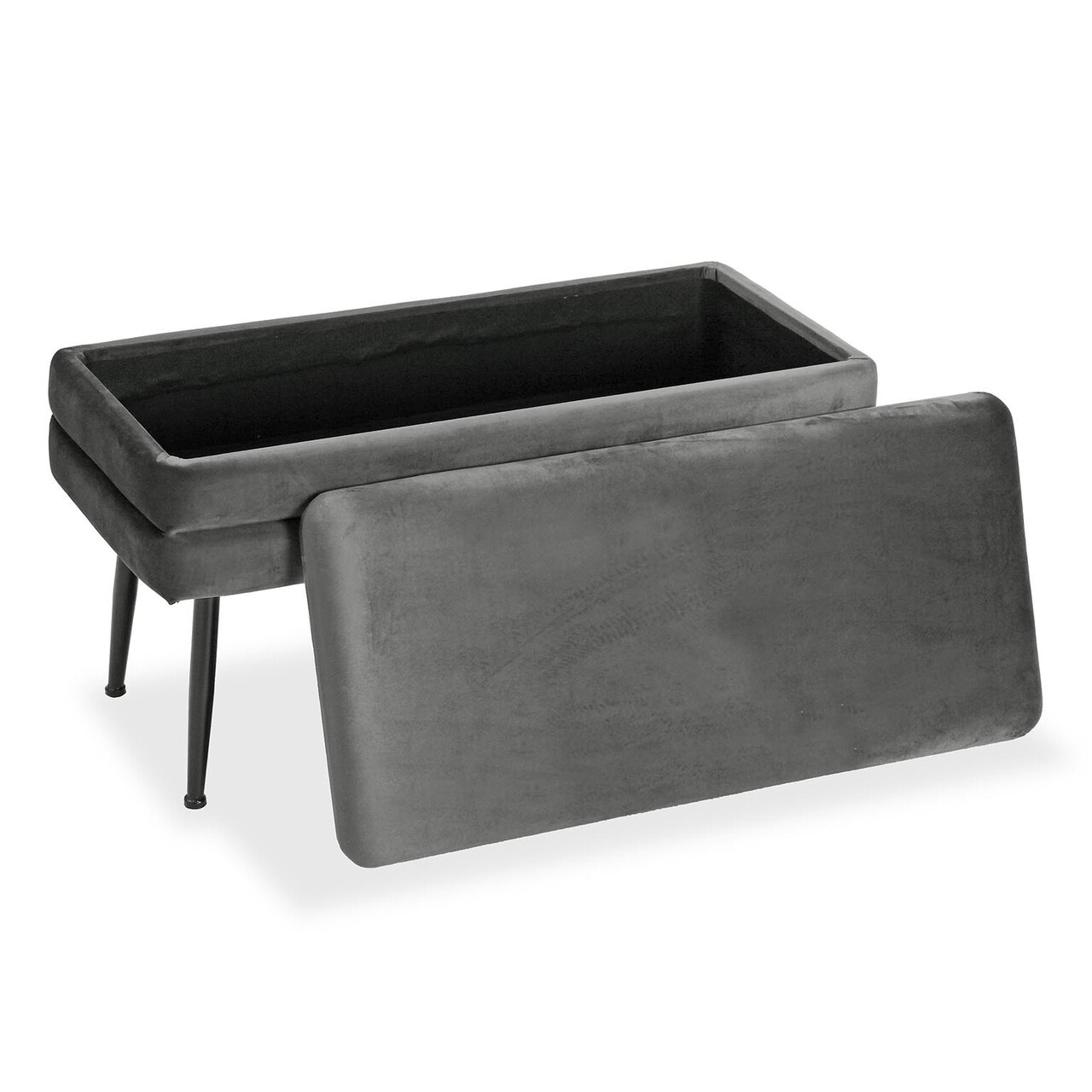 Bancheta cu spatiu de depozitare Madison, Versa, 79.5 x 42 x 37.5 cm, catifea/lemn de pin, gri inchis