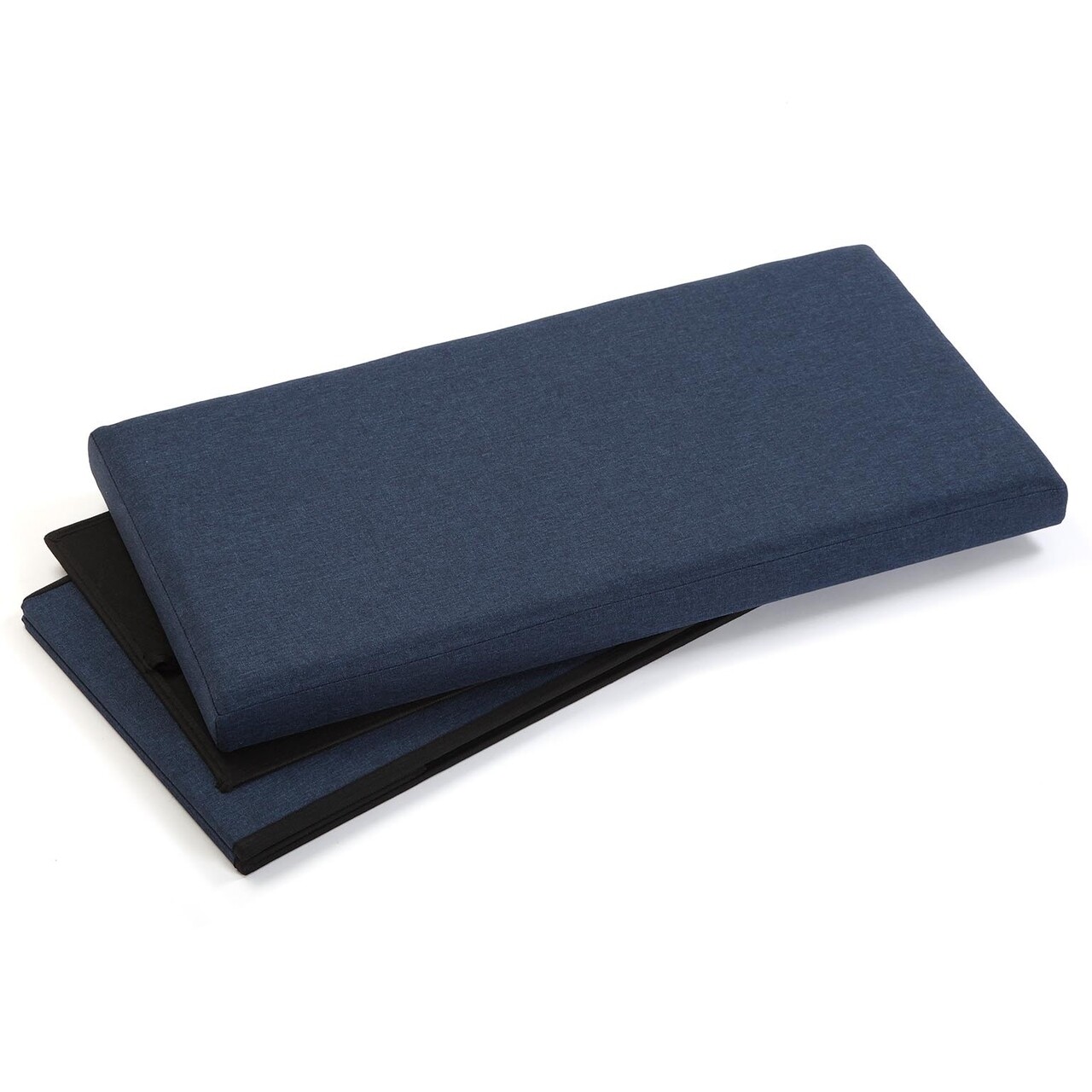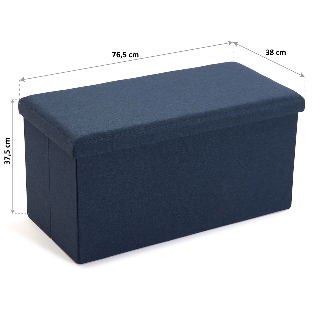 Bancheta cu spatiu de depozitare Rory, Versa, 76.5x38x37.5 cm, poliuretan, MDF, albastru inchis