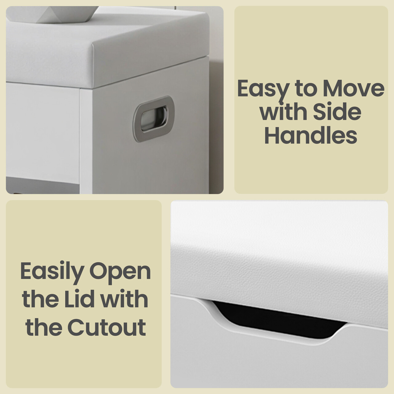 Sigura si usor de mutat: Prevazuta cu 2 balamale rezistente din aliaj, capacul se deschide in siguranta fara a se inchide brusc. Manerele laterale permit mutarea usoara intre camere.