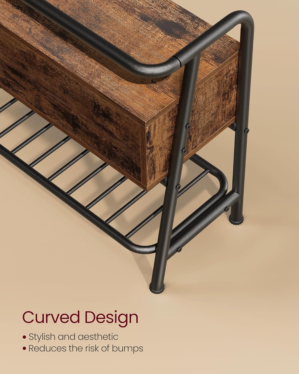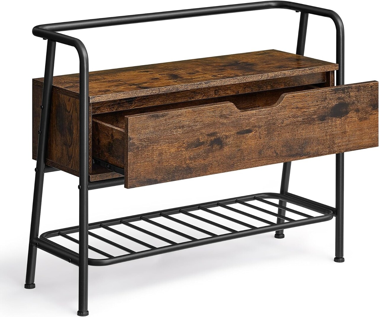 Bancheta cu spatiu de depozitare si pantofar, Vasagle, Industrial Style, max 136 kg, 80x30x63.5 cm, PAL/otel, maro