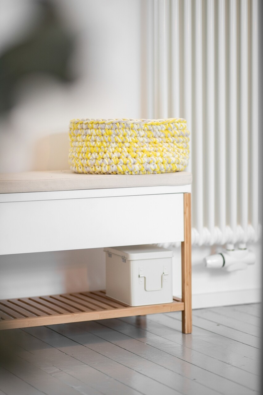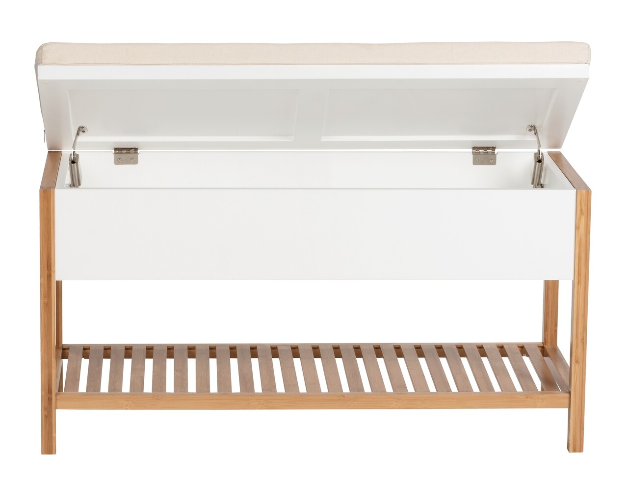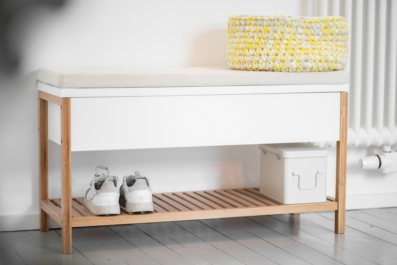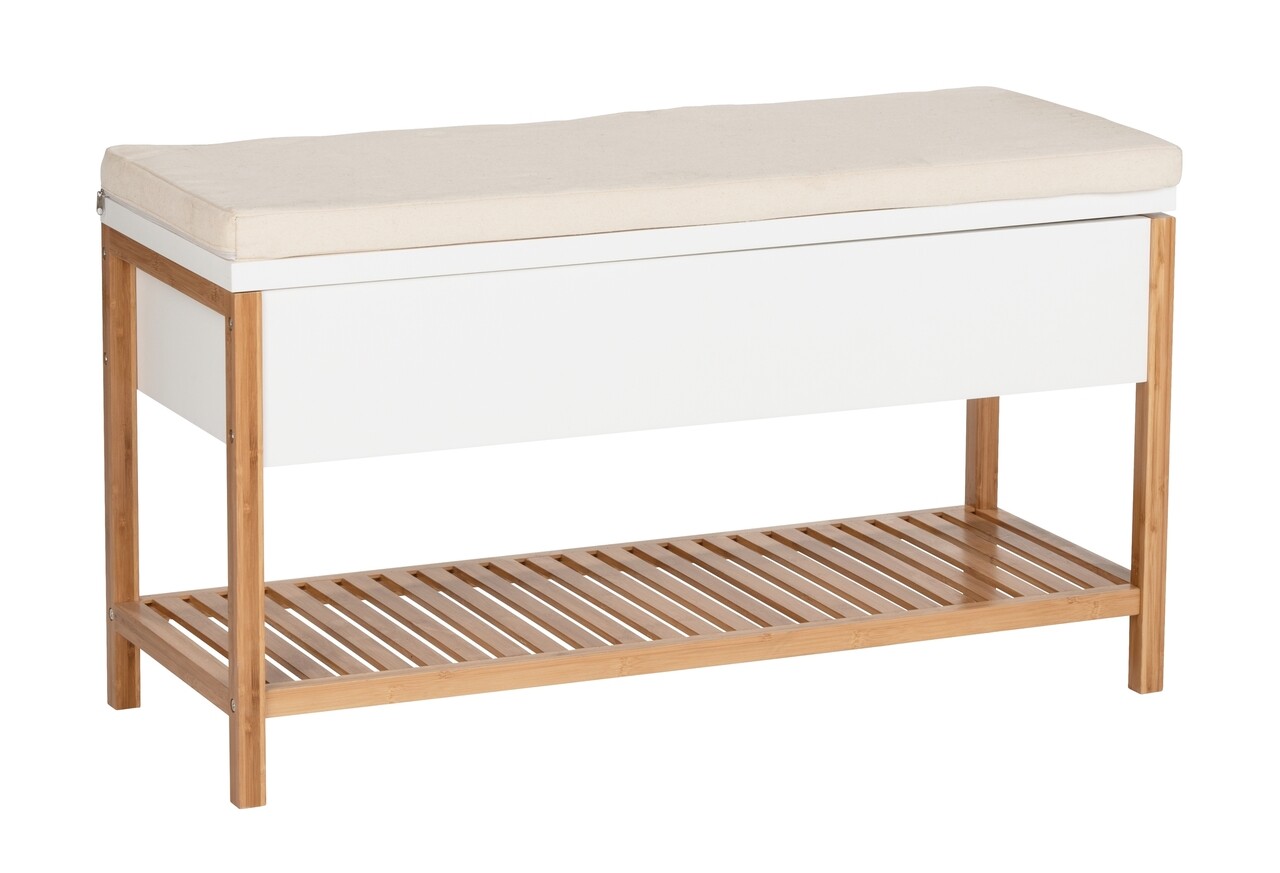 Bancheta cu spatiu depozitare incaltaminte, Wenko, Finja, bambus, alb/natur