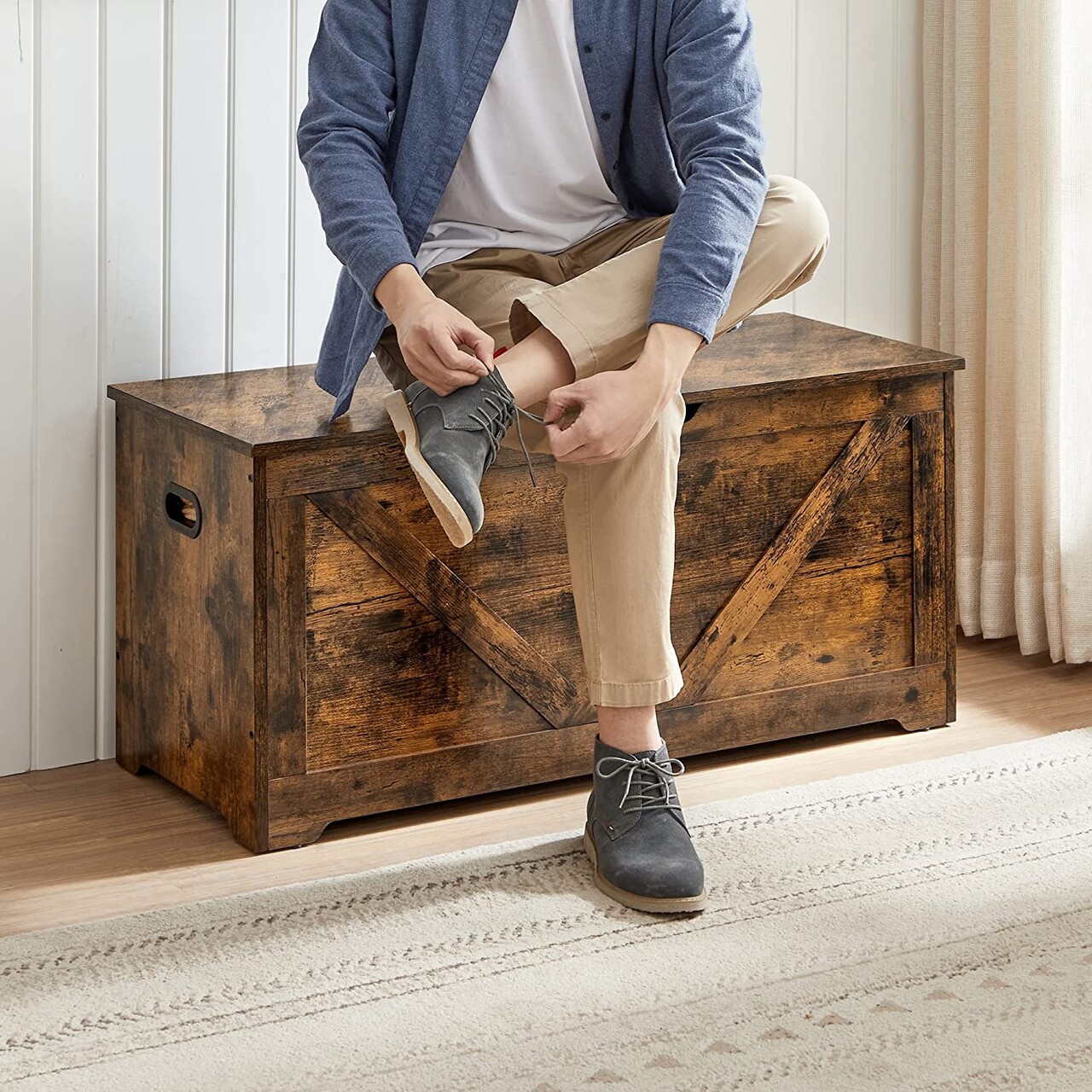 Bancheta cu spatiu depozitare, Vasagle, 100x40x46 cm, PAL, maro rustic