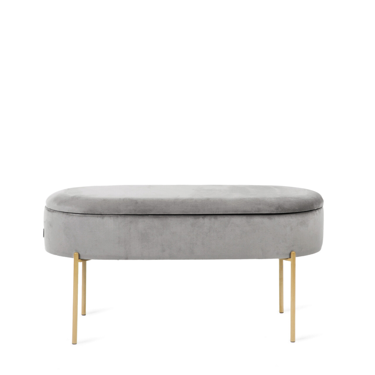 Bancheta cu spatiu pentru depozitare Layla, Homla, 91.5x41x46.5 cm, MDF/metal/catifea, gri