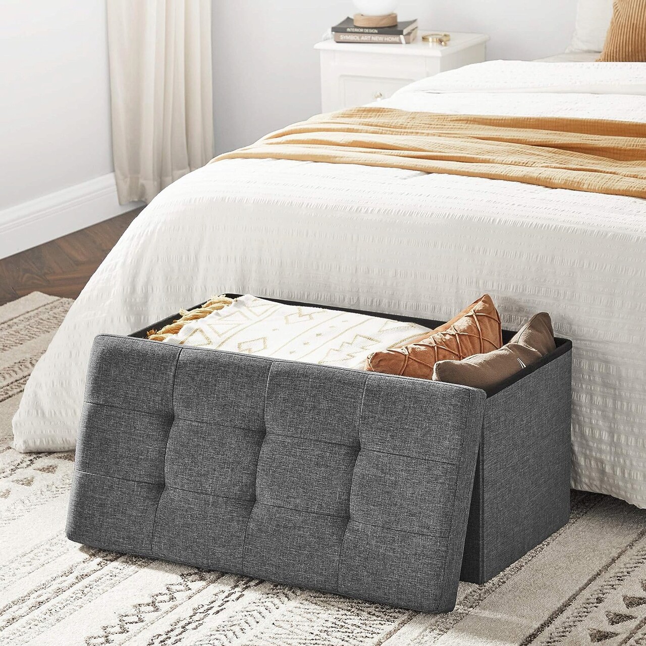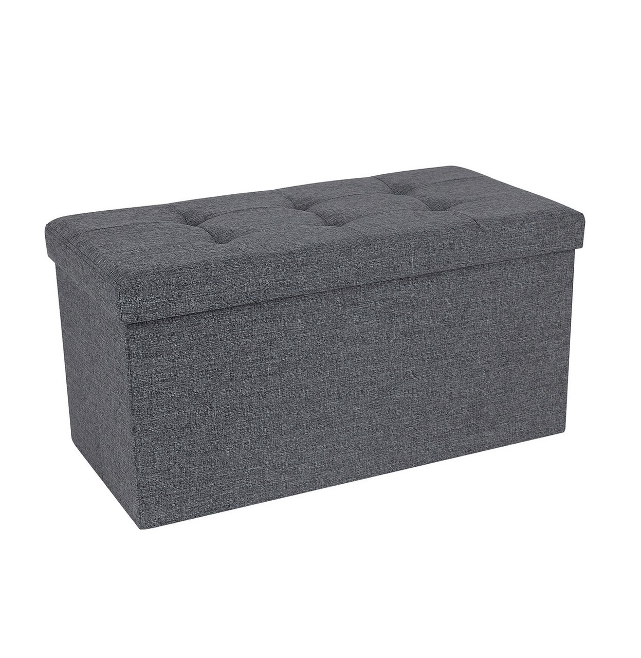 Bancheta cu spatiu pentru depozitare Ottoman Classic, Songmics, 76 x 38 x 38 cm, pliabila, imitatie in/MDF, gri inchis
