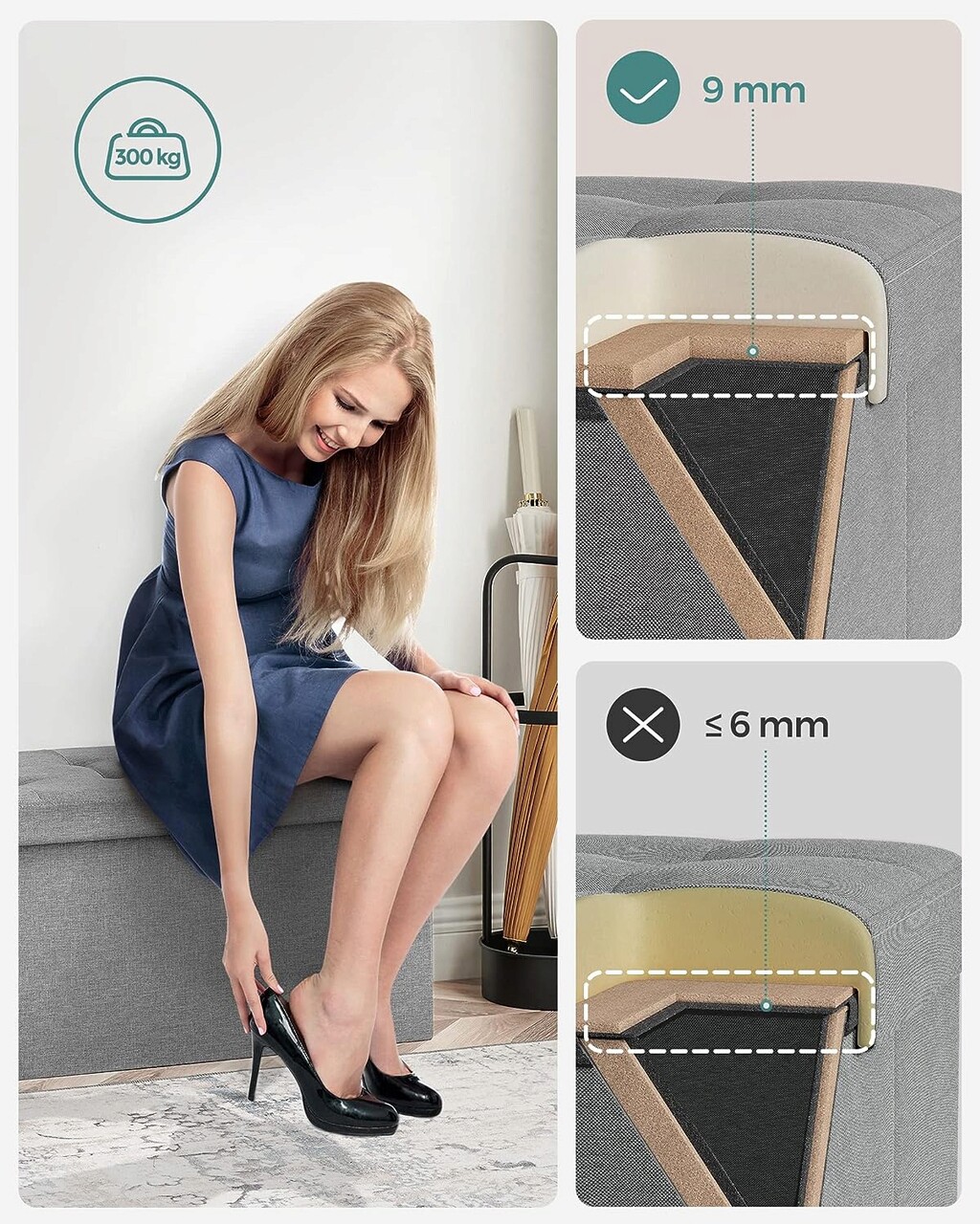 Versatila - banca Songmics serveste si ca bancheta pentru pantofi, suport pentru picioare, cutie de depozitare, masuta laterala, etc. Fie ca este pe hol, in camera de zi sau in dormitor, este intotdeauna la indemana.