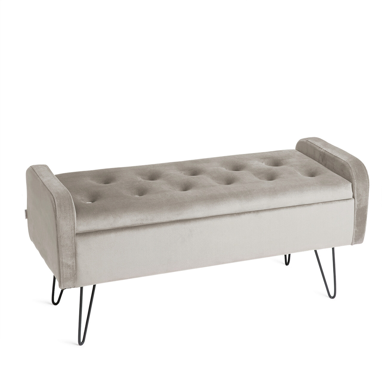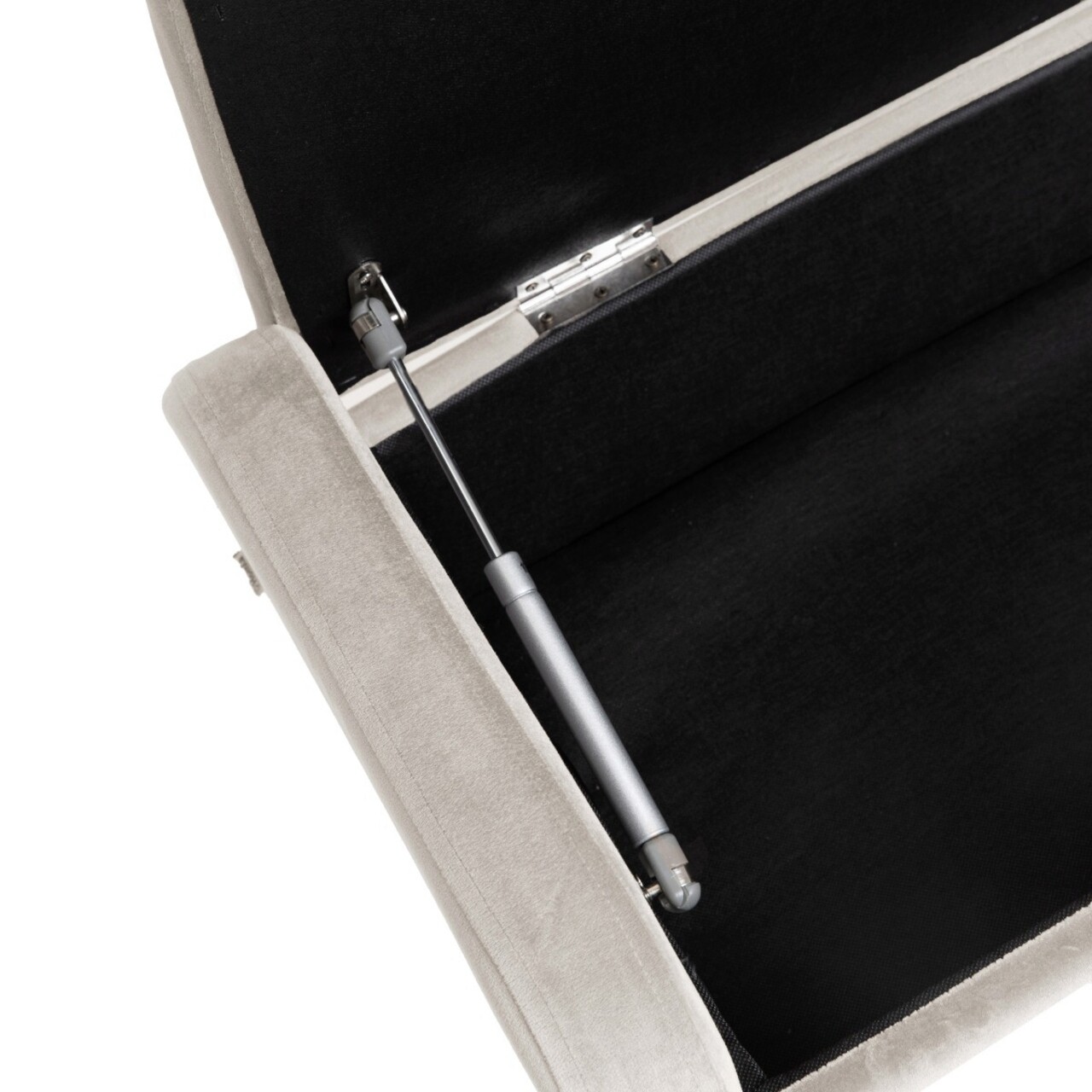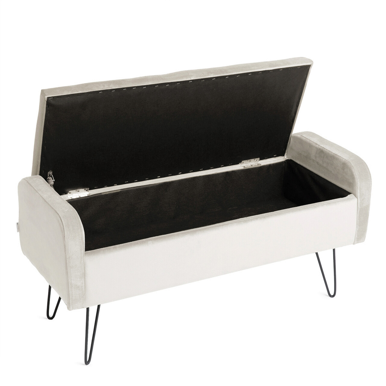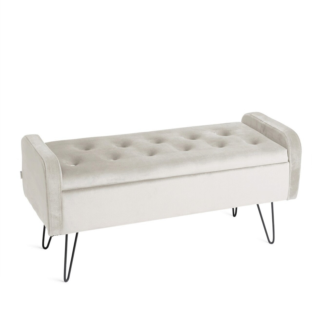 Bancheta cu spatiu pentru depozitare Venlo, Homla, 96x39x45 cm, catifea din poliester/metal, crem/negru