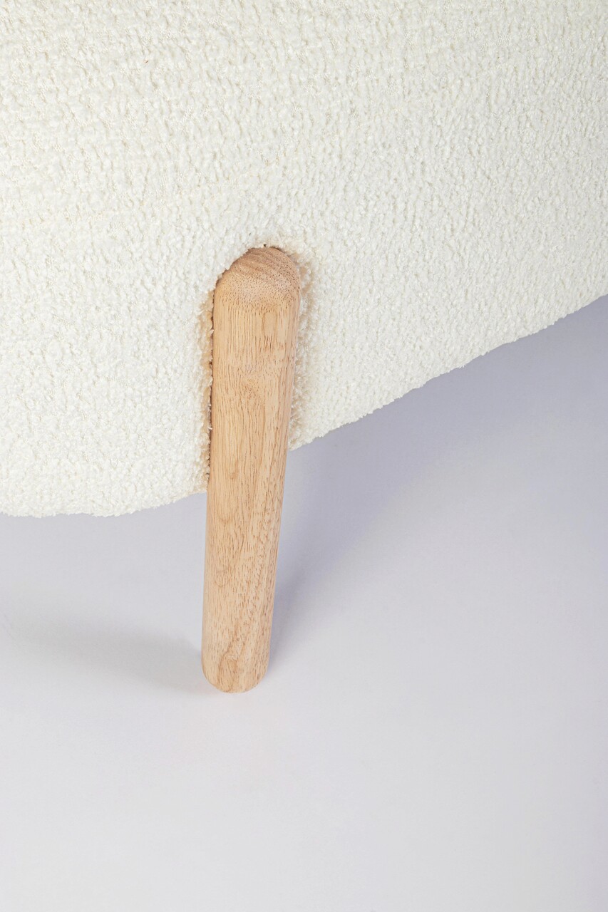 Bancheta Dayla, Bizzotto, 108 x 41.5 x 48 cm, arbore de cauciuc/poliester Boucle, alb