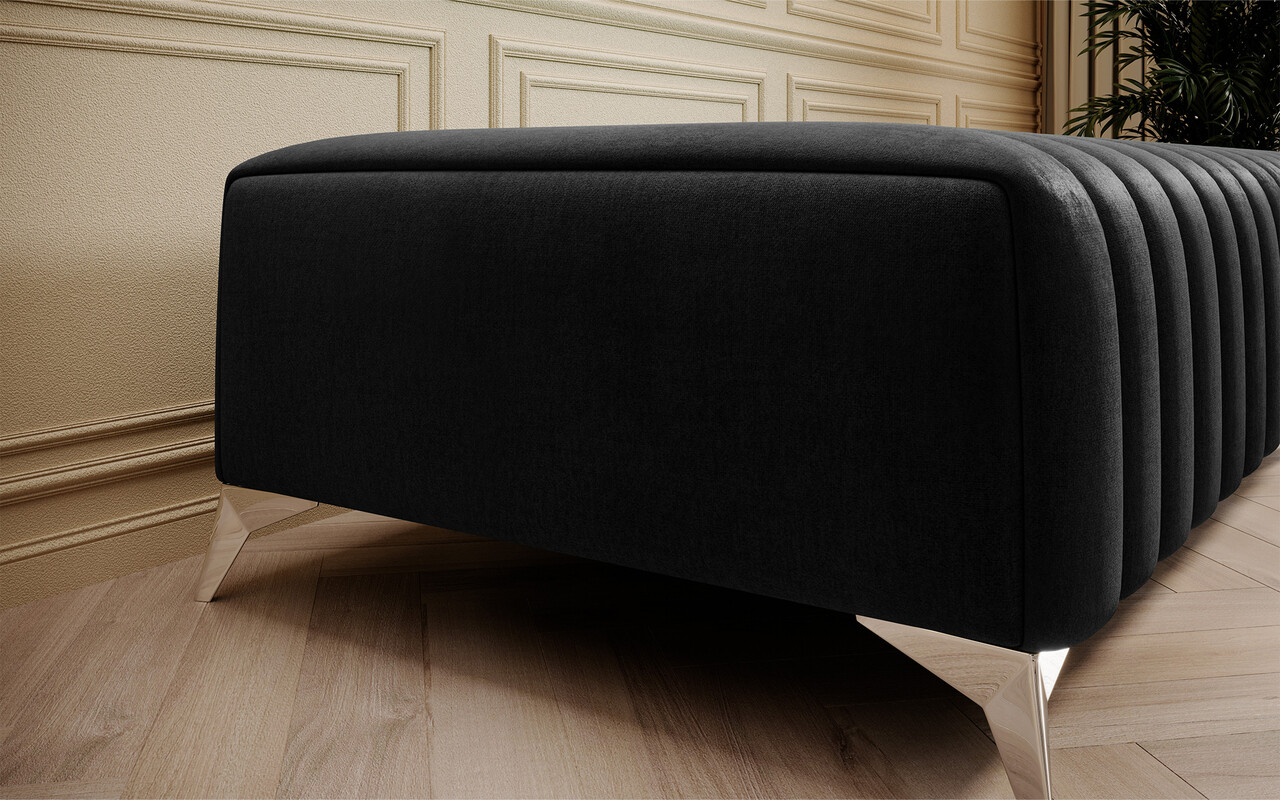 Un detaliu ce adauga un plus de stil si rafinament il reprezinta picioarele inalte de 9 cm, realizate din otel cromat, ce confera atat stabilitate, cat si o nota eleganta. De asemenea, cusaturile decorative transforma acest produs intr-o piesa sofisticata, potrivita oricarui interior modern.
