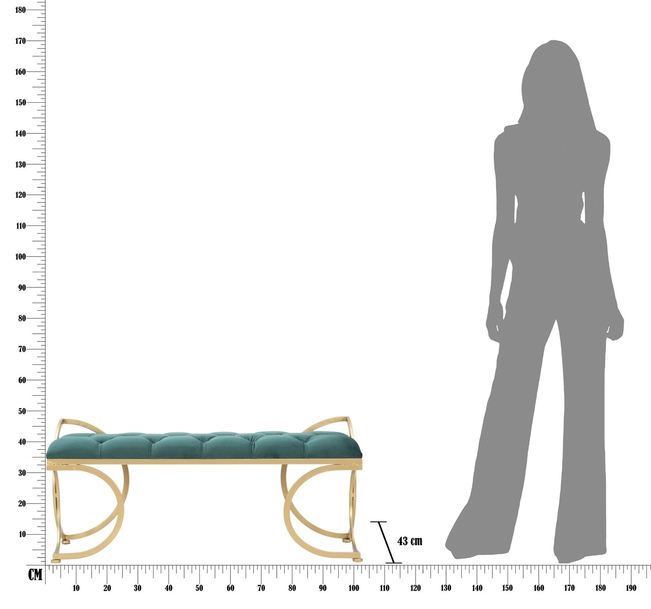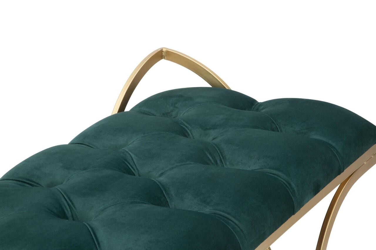Bancheta Glam Luxy, Mauro Ferretti, 103x43x47 cm, fier/catifea, verde/auriu