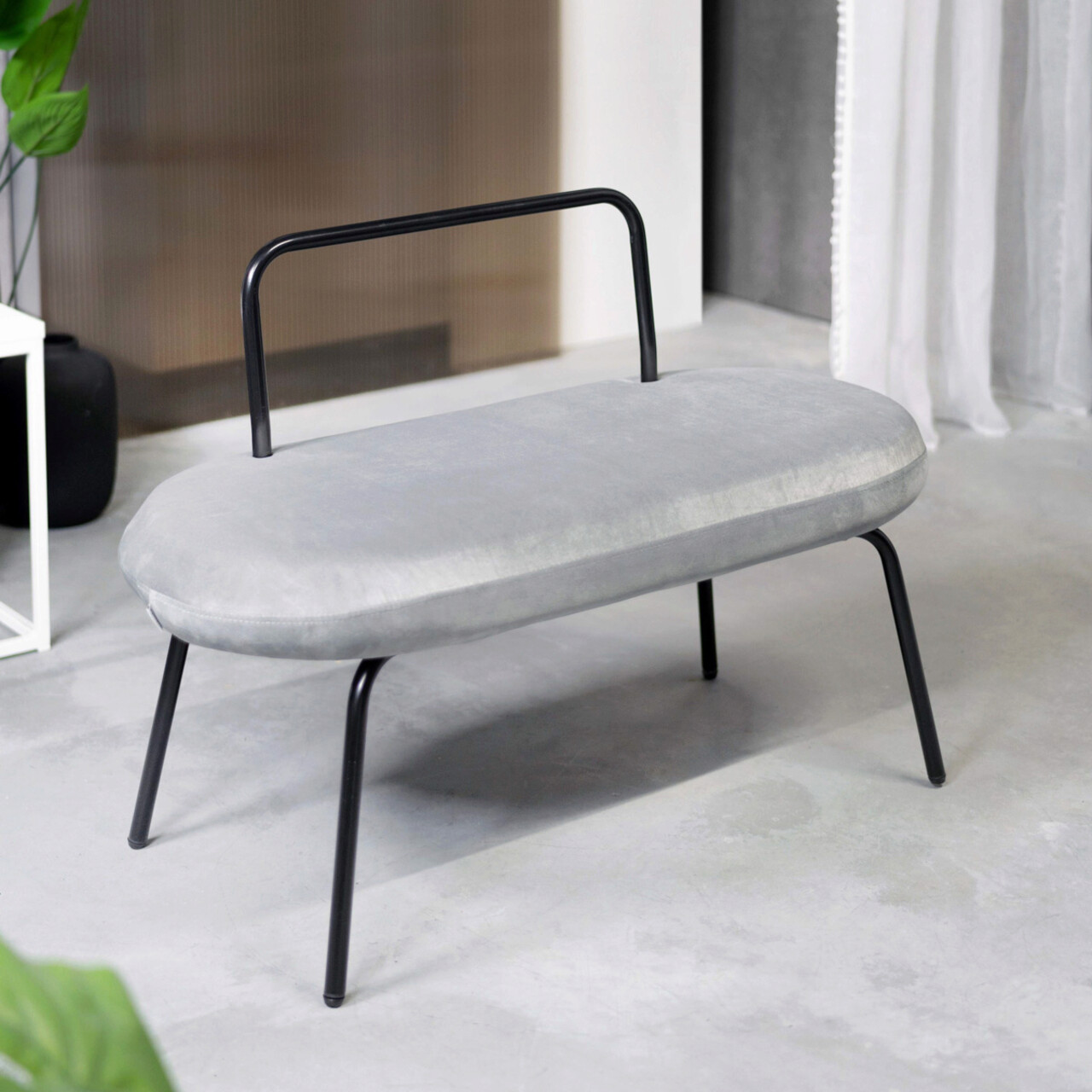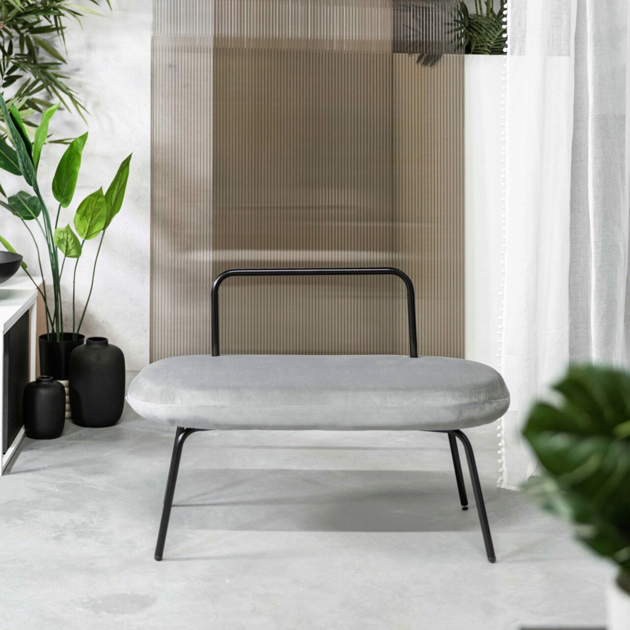 Bancheta Ina, Homla, 95x45x61 cm, catifea, gri deschis
