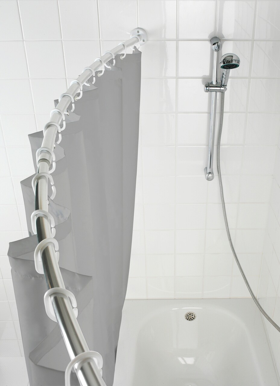 Bara extensibila pentru perdeaua de dus, Wenko, Arched Chrome, 2.5 x 110-200 cm, aluminiu, alb