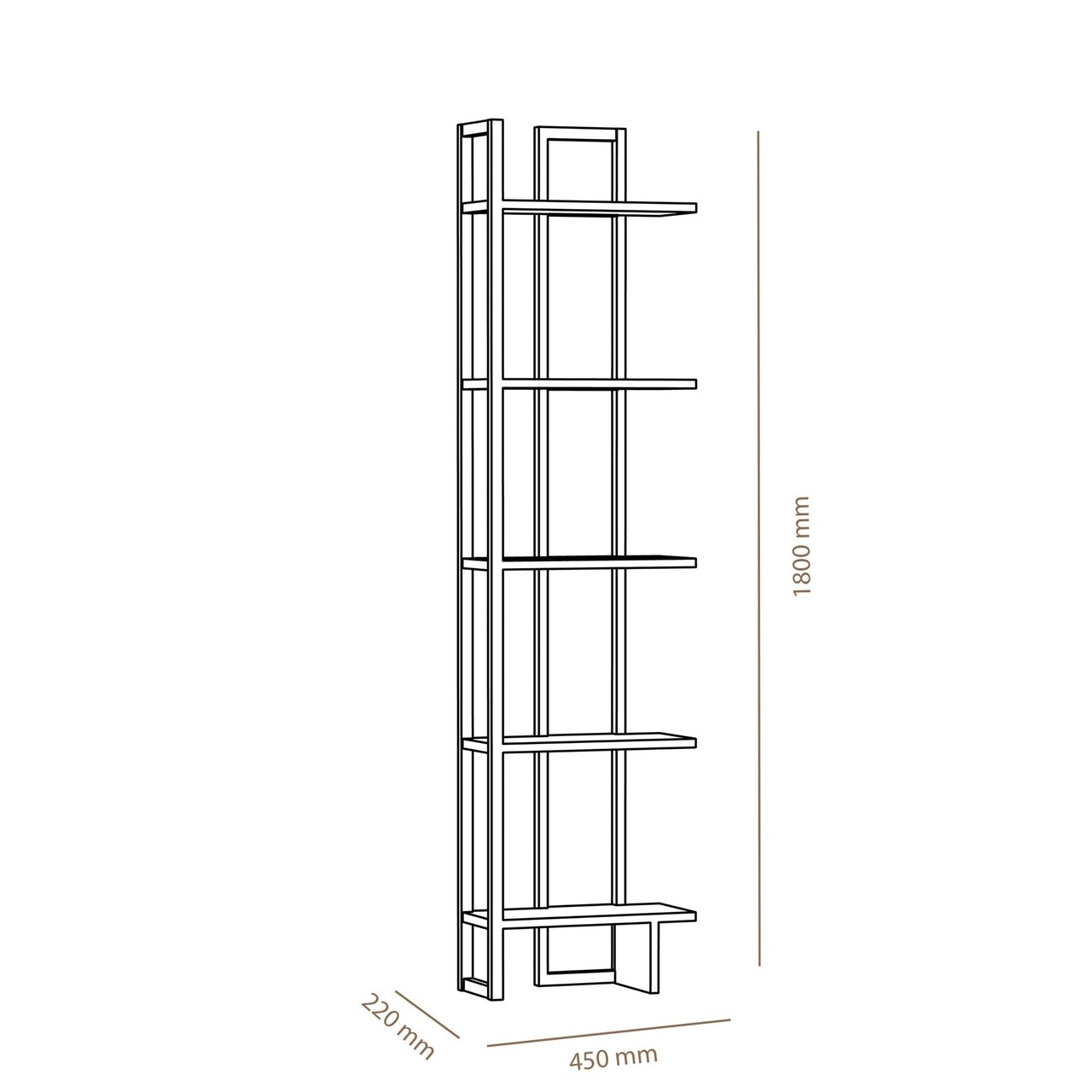 Biblioteca Alice, Zena Home, 45x22x180 cm, natural/negru