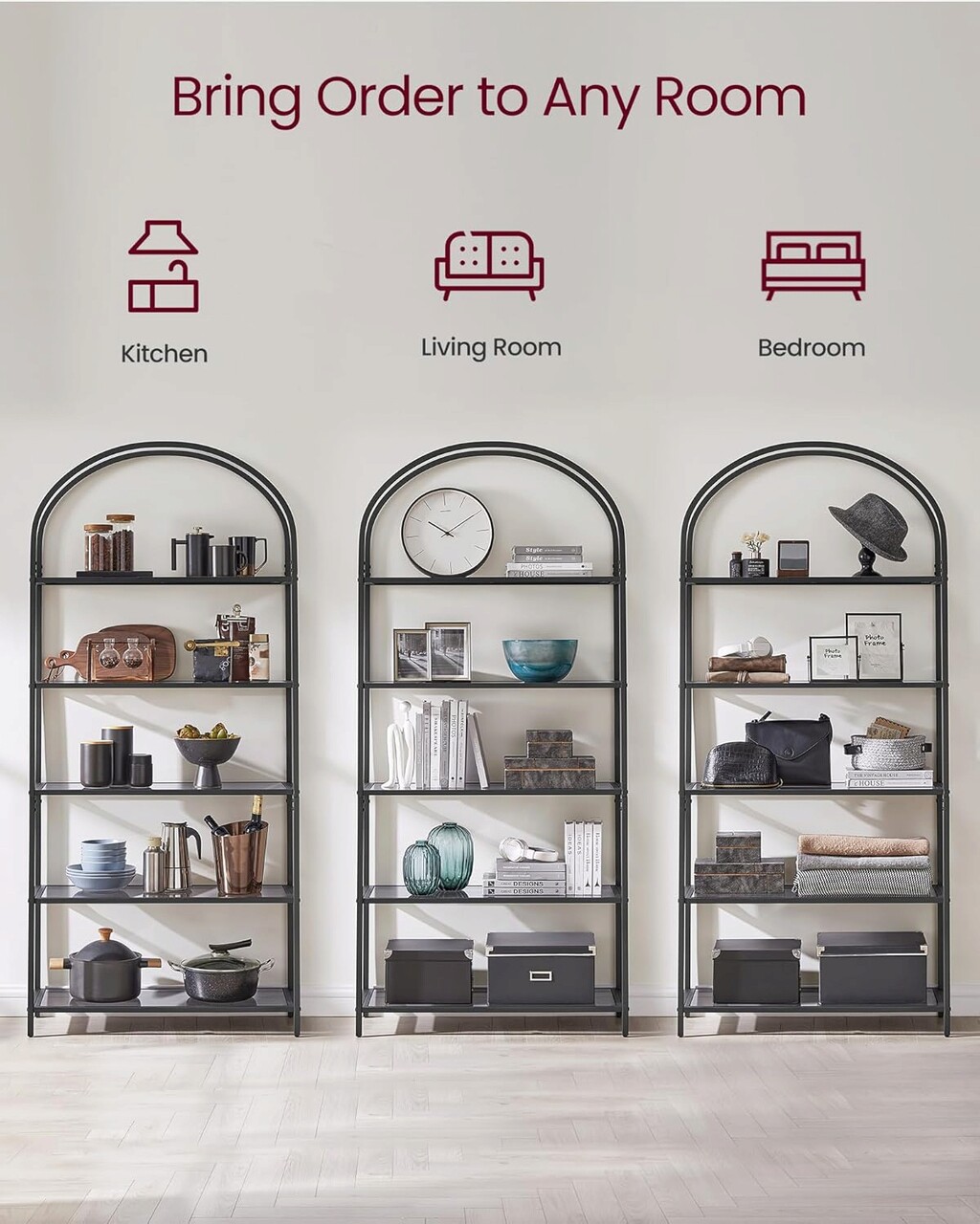 5 rafturi pentru orice Aceasta unitate de rafturi de 30,2 x 83 x 183,5 cm are 5 rafturi late cu o distanta de 31,2 cm intre fiecare nivel pentru a oferi mult spatiu pentru decoratiuni, carti, rame foto, vaze si multe altele.