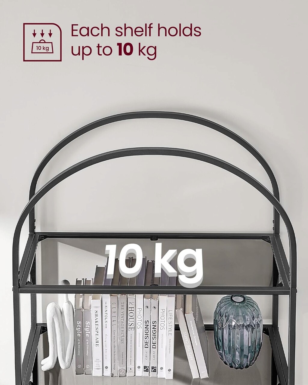 Practic in orice camera Pentru decoratiuni in camera de zi, documente in birou, cosuri de depozitare in dormitor, cosuri in bucatarie sau chiar articole de toaleta in baie - acest raft de depozitare le face pe toate datorita sticlei impermeabile si otelului rezistent la rugina.