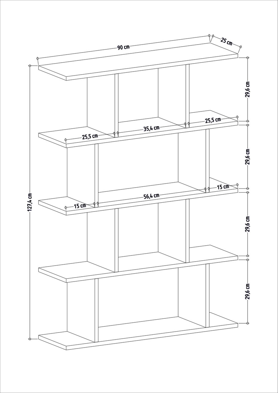Biblioteca, Colman, Harmon, 90 x 25 x 127.4 cm, pal melaminat, alb/stejar