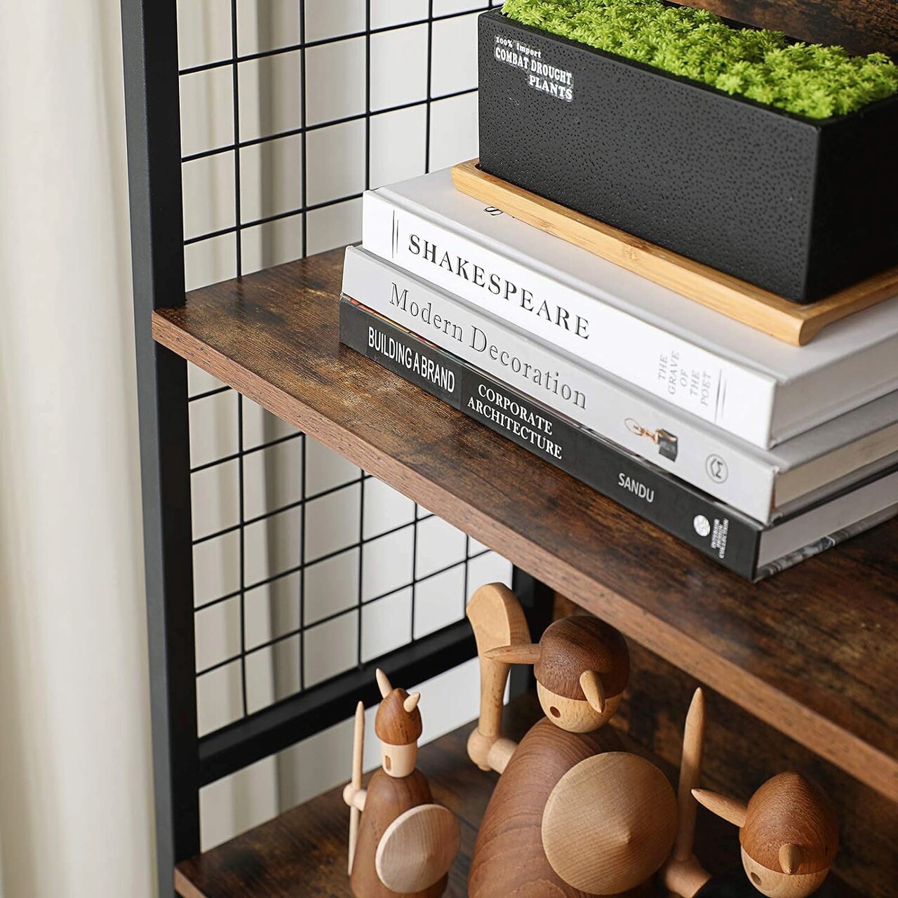 Biblioteca cu 4 rafturi, Vasagle 74 x 30 x 154.5 cm, PAL/otel, maro rustic