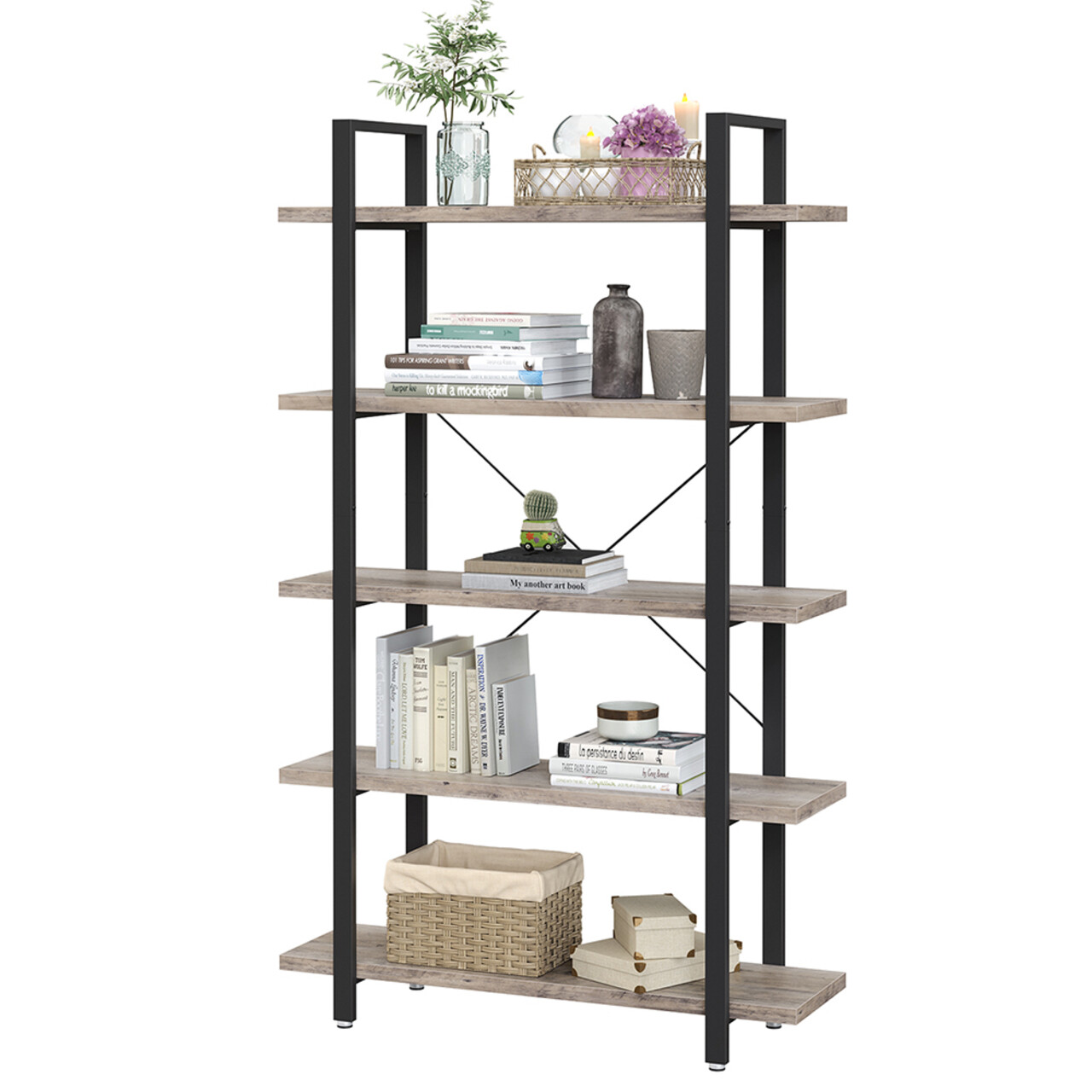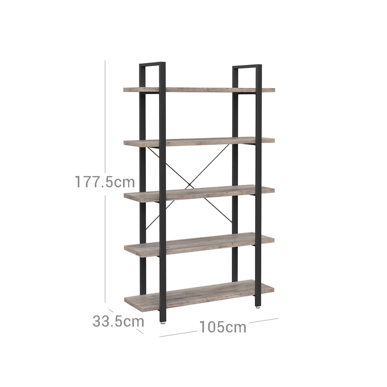 Biblioteca cu 5 rafturi, Vasagle, Industrial, 105x33.5x177.5 cm. PAL/otel, gri/negru