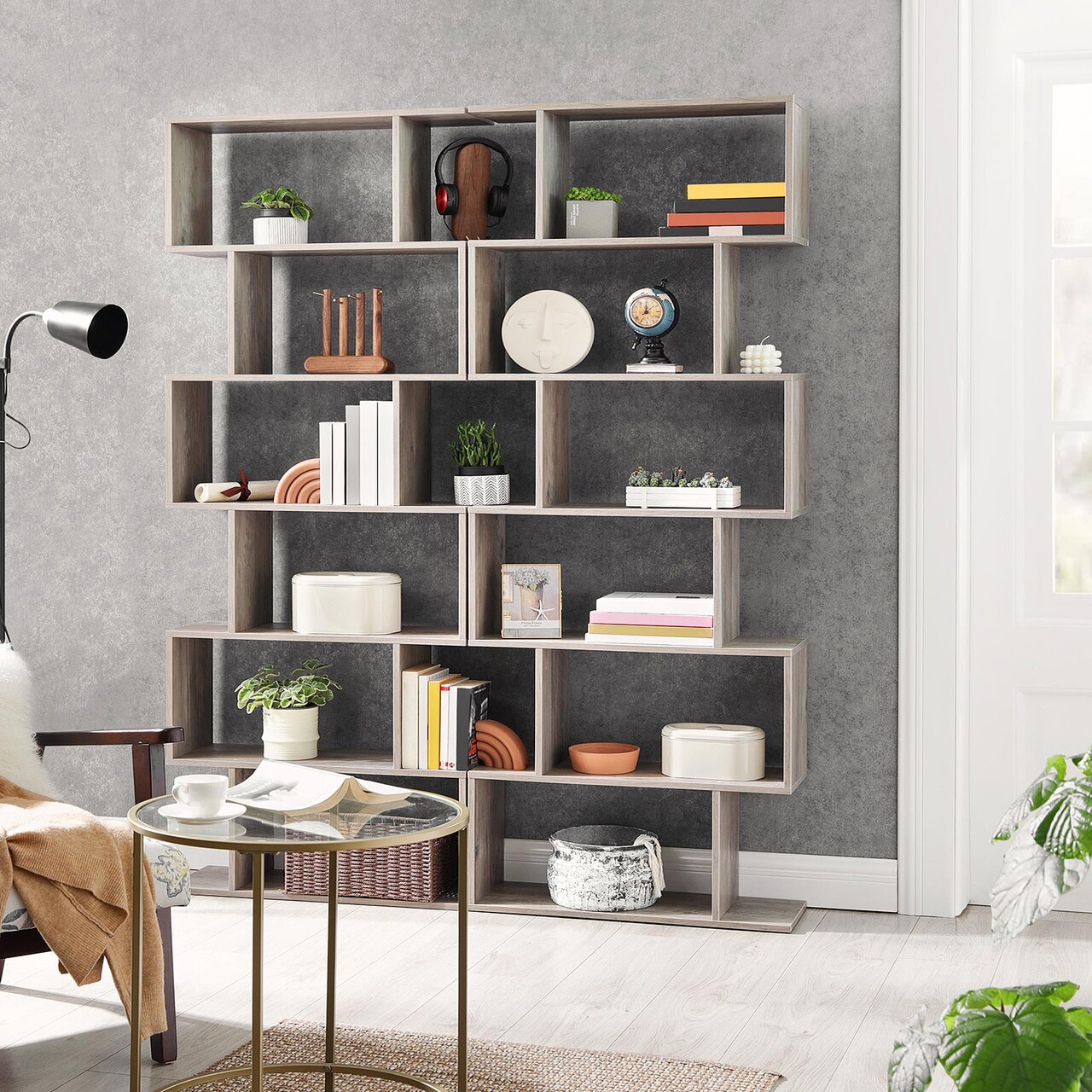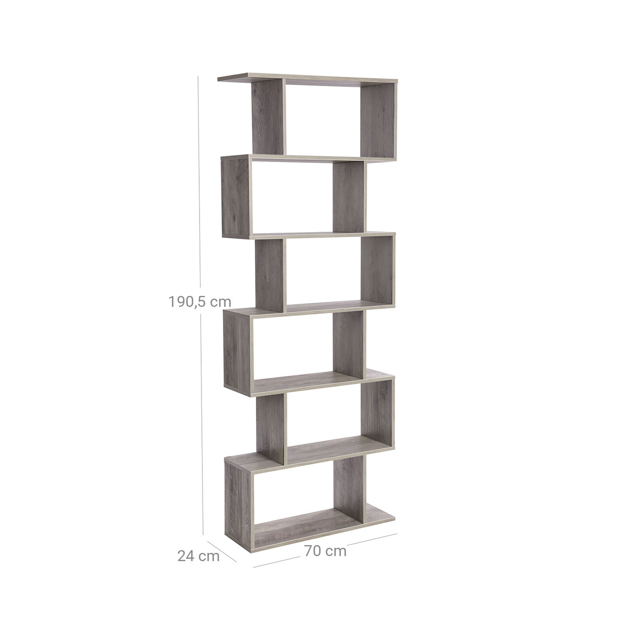 Biblioteca cu 6 rafturi, Vasagle, Cube Display, 70x24x190.5 cm, PAL, gri