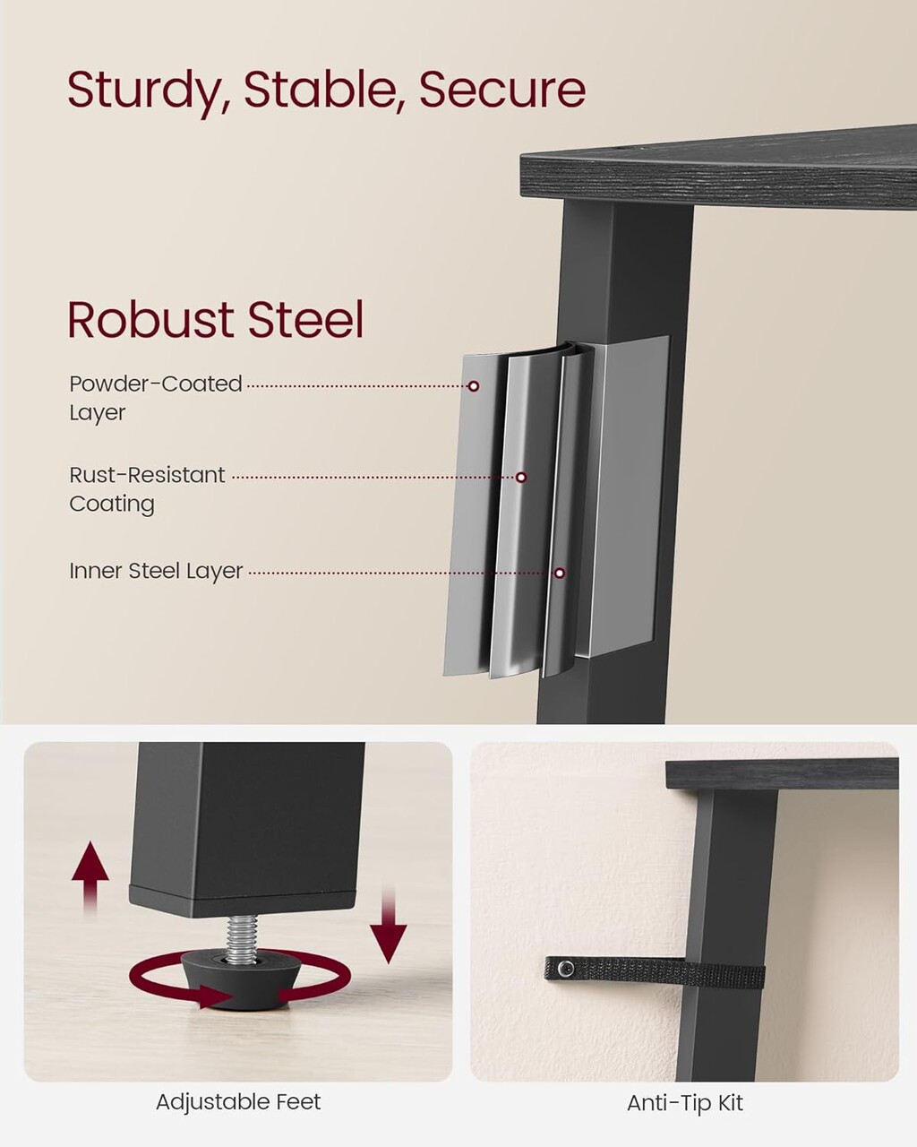 Design stabil si sigur Cu designul sau cu 3 picioare si un picior din spate reglabil, acest raft de colt este stabil pe podele usor inegale si se potriveste perfect pe orice perete. In plus, un kit anti-inclinare ofera un plus de siguranta.