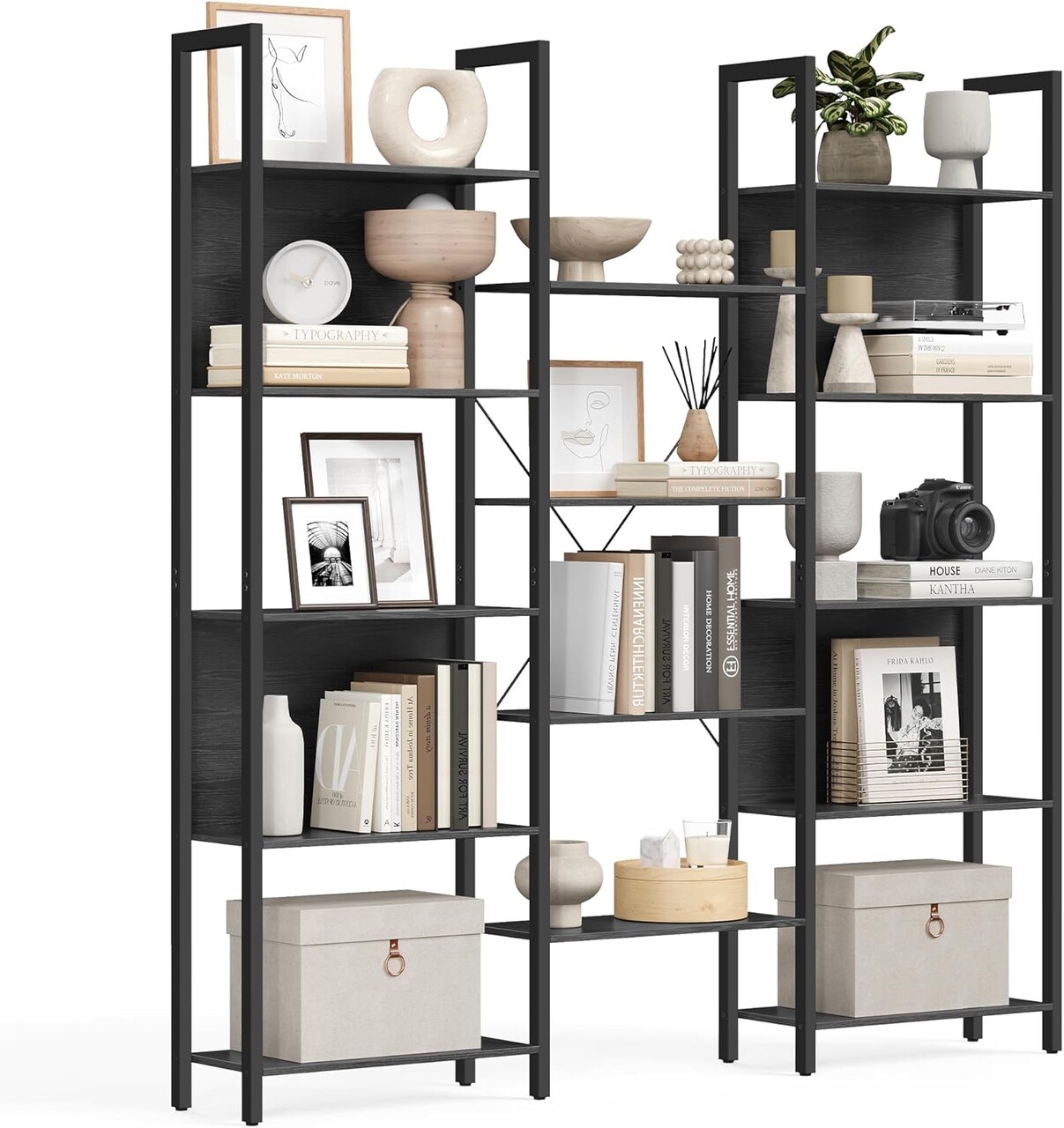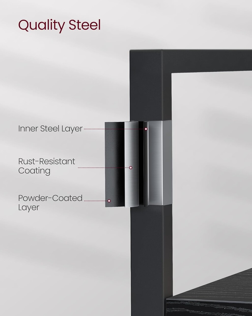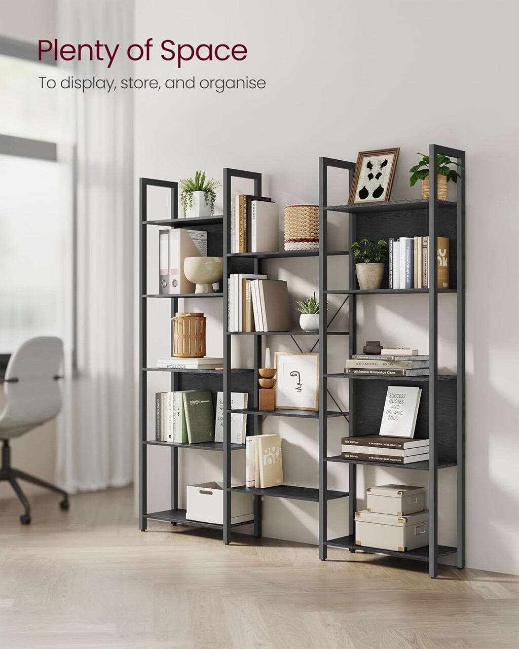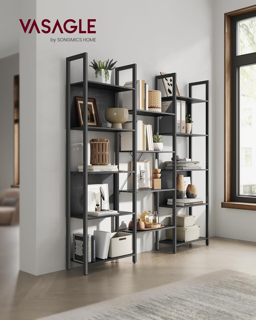 Biblioteca Ebony, Vasagle, 158x24x166 cm, PAL/otel, max 140 kg, negru