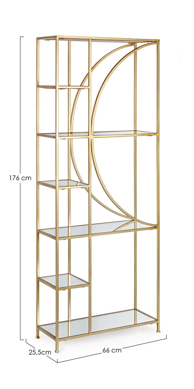 Biblioteca Elenor, Bizzotto, 66 x 25.5 x 176 cm, otel/sticla, auriu