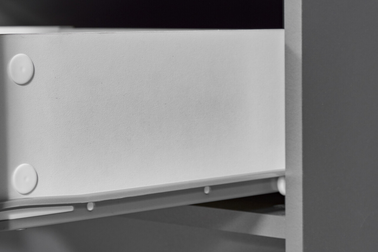 Aceasta unitate de etajera independenta ofera un spatiu amplu de depozitare, cu trei rafturi si trei sertare pe glisiere metalice cu glisare lina. Biblioteca este rezistenta la apa si usor de curatat.