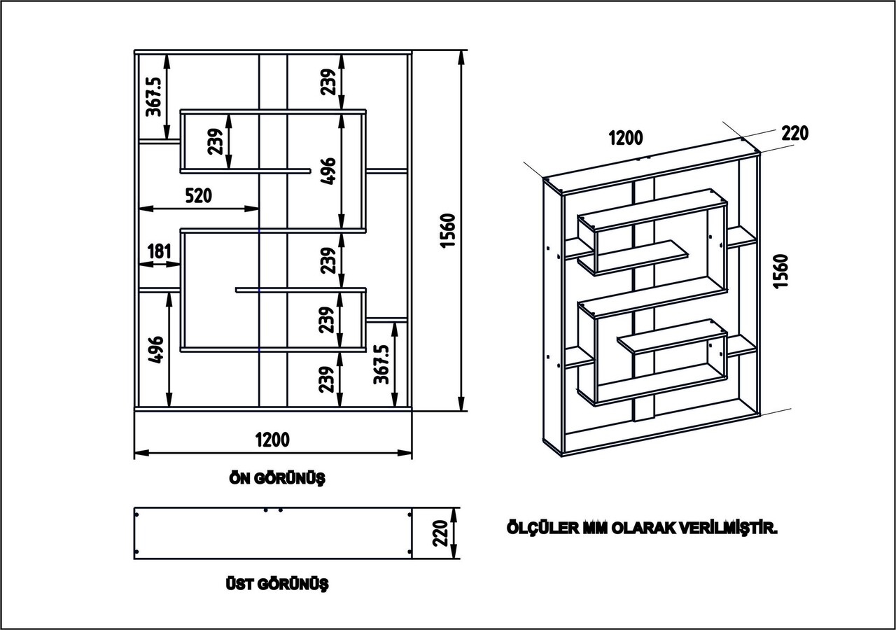 Biblioteca Esteban, Zena Home, 120x22x156 cm, natural/negru
