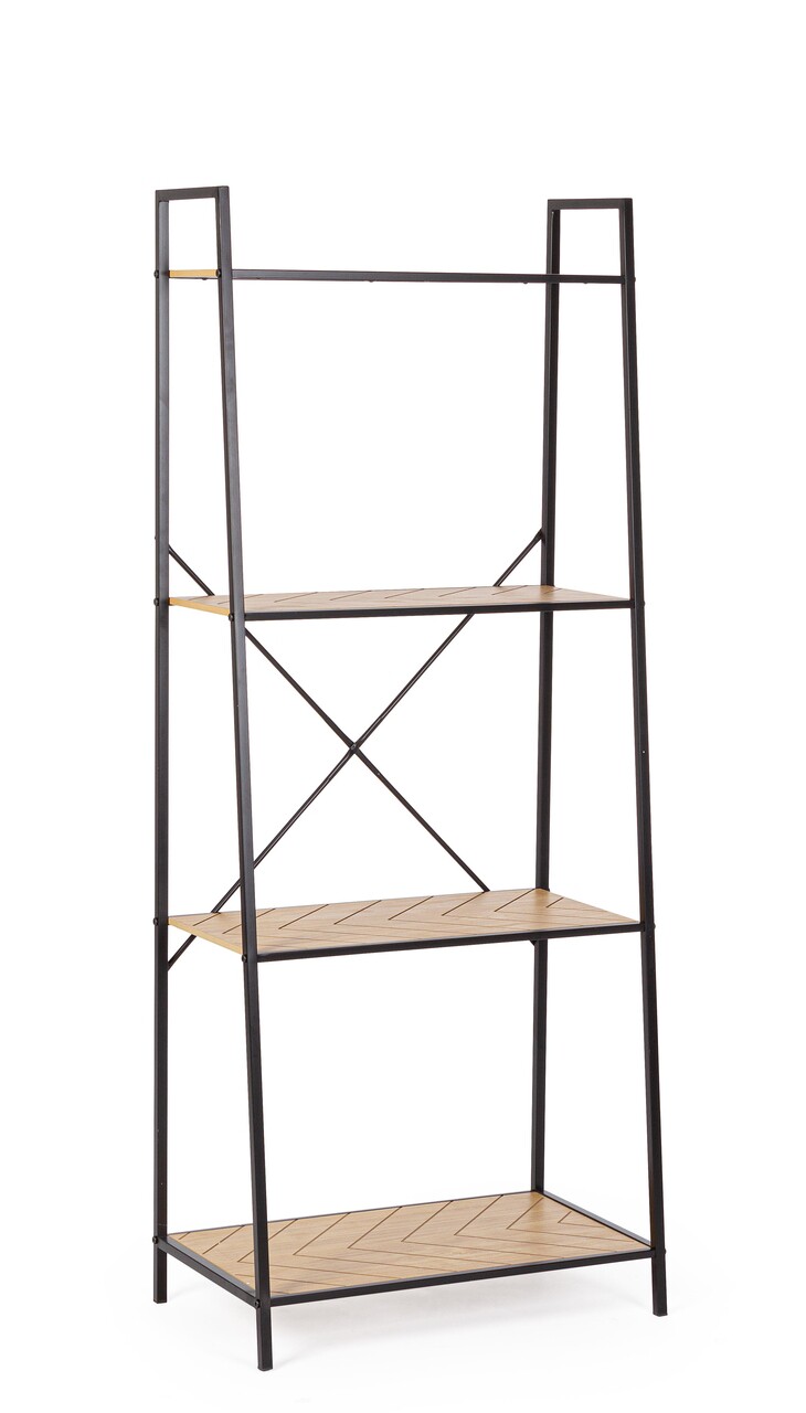 Biblioteca Haldor, Bizzotto, 60.5x36x150 m, otel/MDF furniruit, negru/natural