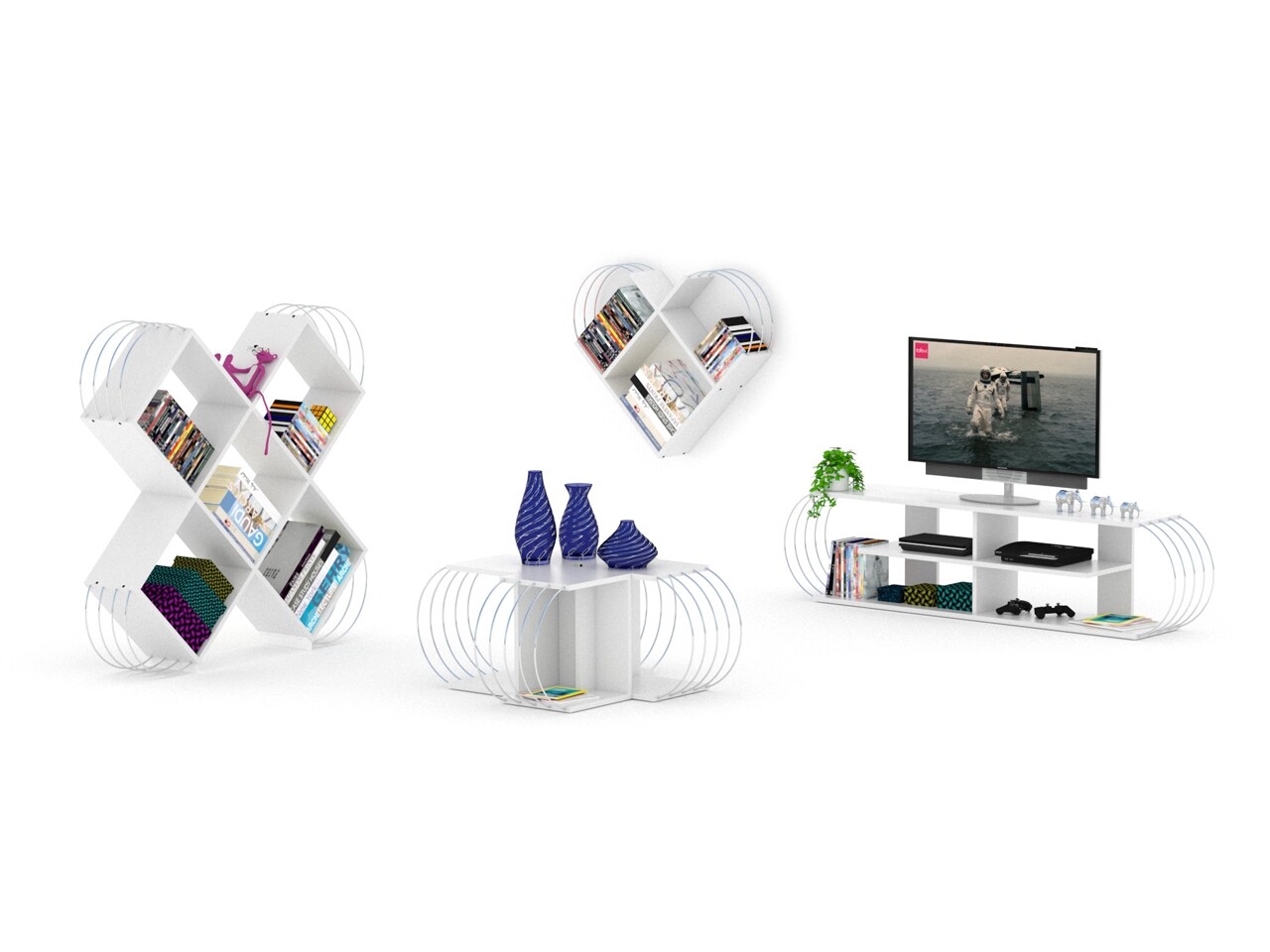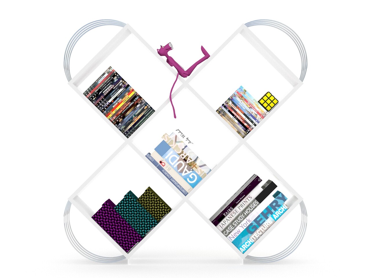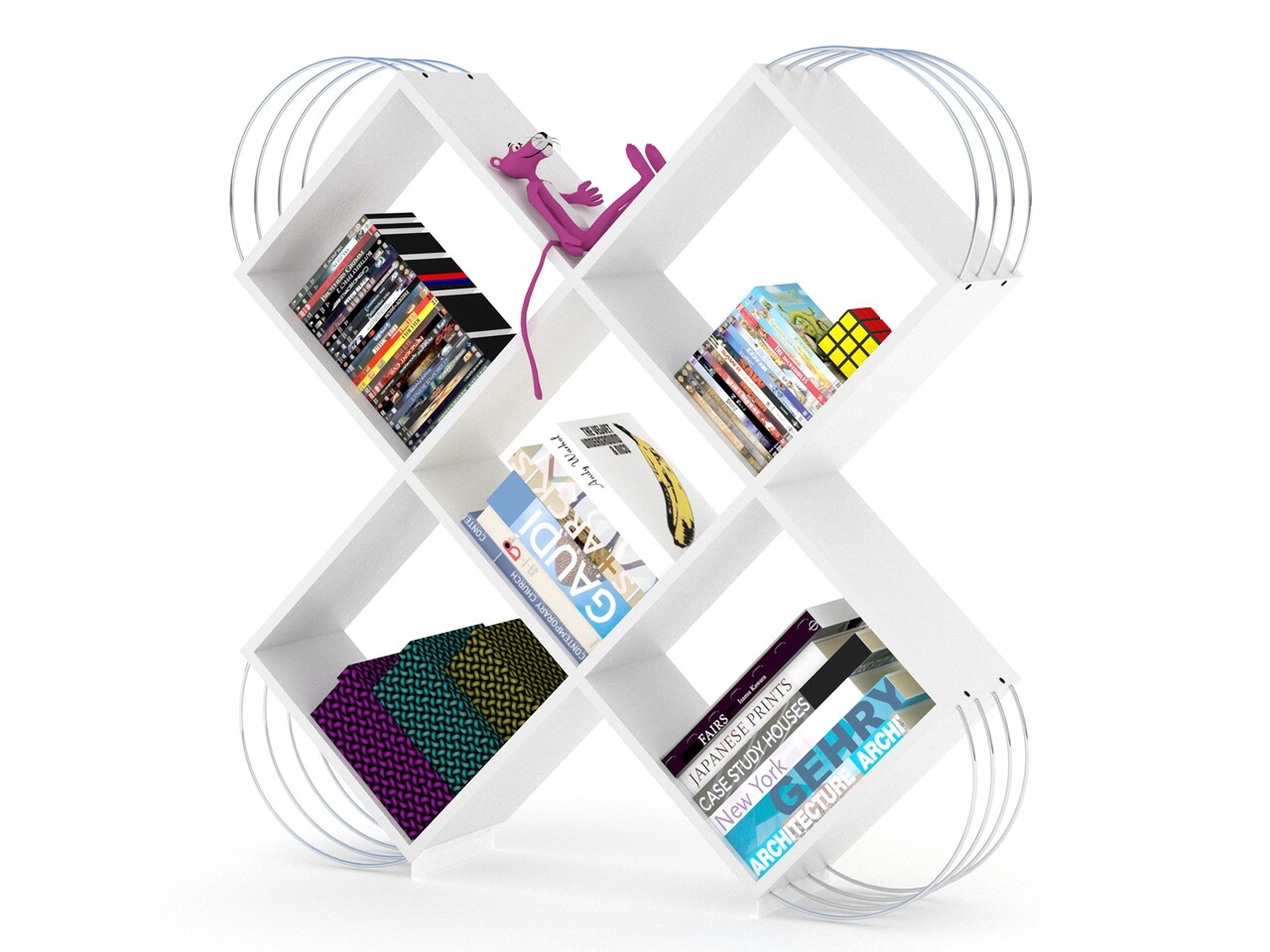 Biblioteca Rafevi Case, 120 x 25 x 120 cm, PAL/metal, alb/chrome