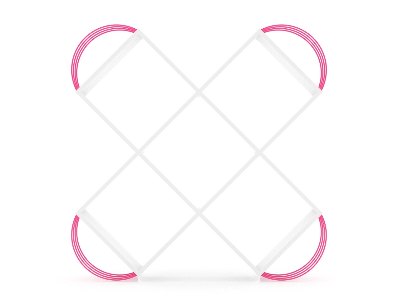 Biblioteca Rafevi Case, 120 x 25 x 120 cm, PAL/metal, alb/roz