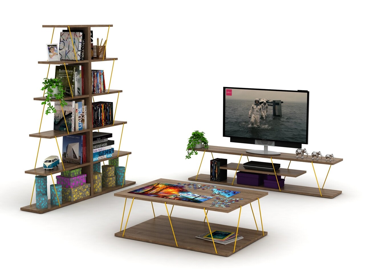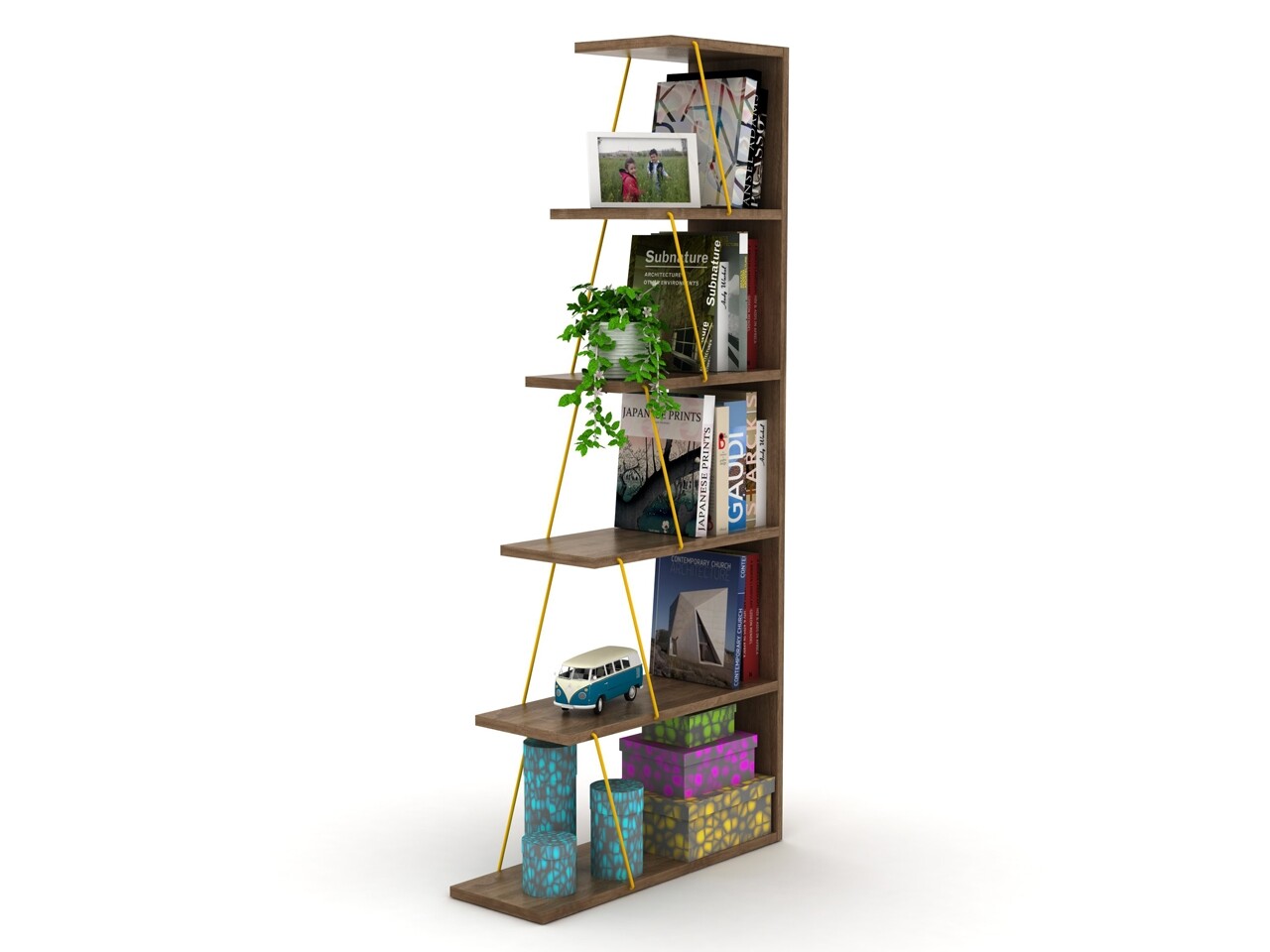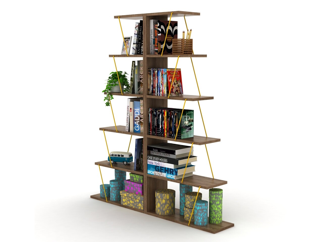 Biblioteca Rafevi Tars, 65 x 22 x 146 cm, PAL/metal, walnut/galben