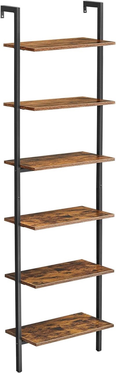 Biblioteca / raft tip scara Vasagle, 60 x 30 x 204.8 cm, cu fixare pe perete, PAL/otel, maro rustic