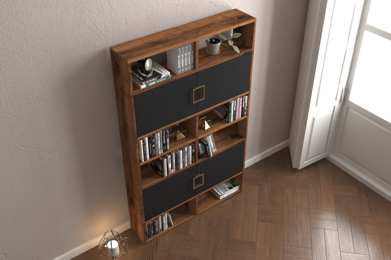 Biblioteca RF.004.004.140, Gauge Concept, 93x22x150 cm, PAL, aluna/negru