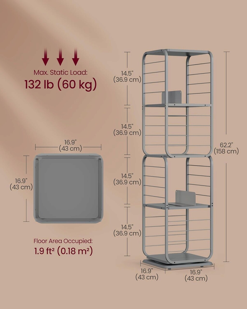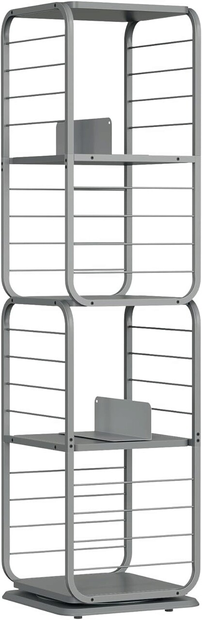Biblioteca rotativa Vasagle, 43x43x158 cm, PAL/otel, max 60 kg, gri