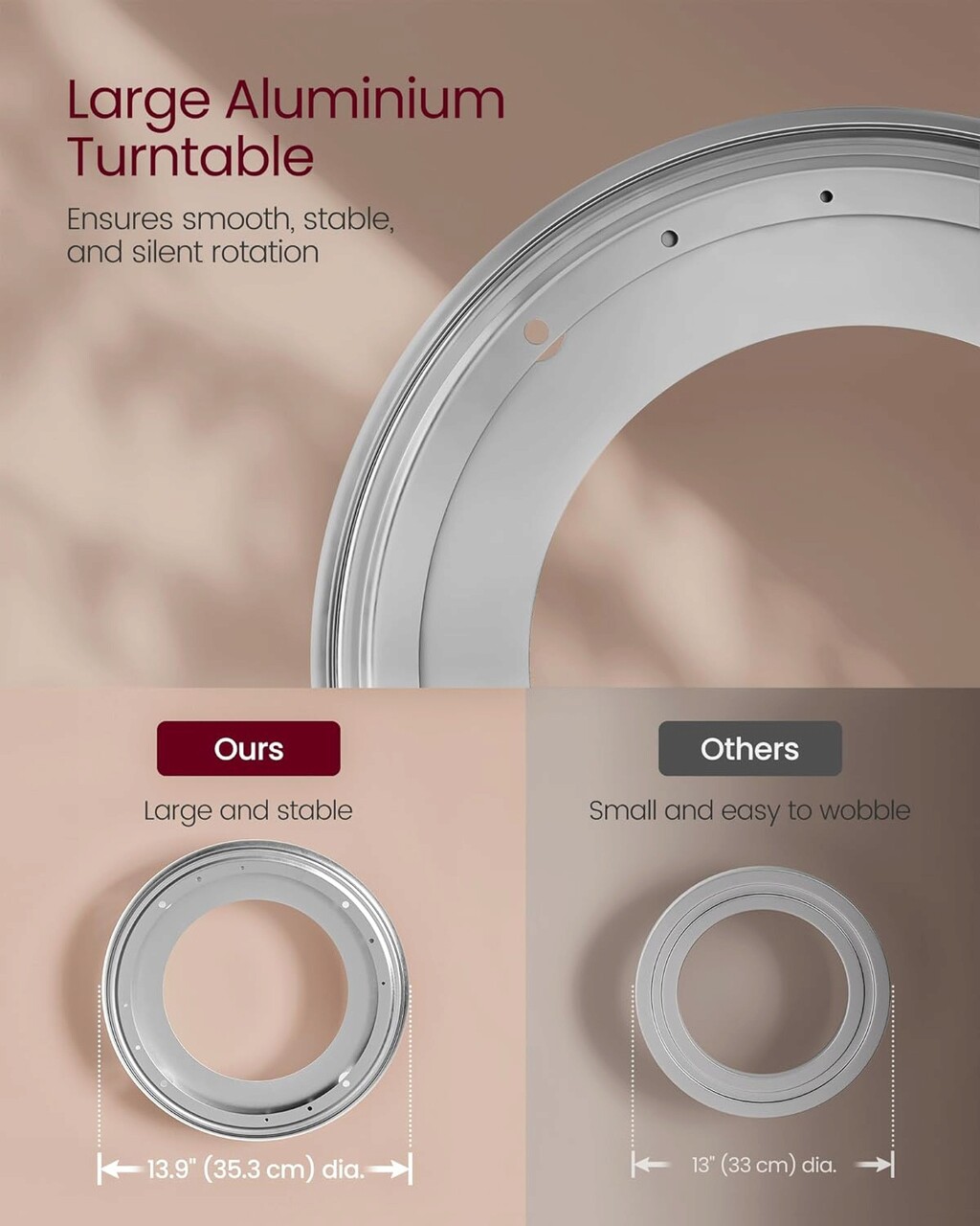 Biblioteca rotativa la 360 ° Cu designul sau inovator rotativ, cartea dvs. preferata este la doar o rotire distanta. Protectiile laterale din metal asigura ca obiectele nu vor cadea in timpul rotatiei, iar rafturile incapatoare, cu spatii mari, gazduiesc in siguranta cartile mai mari.
