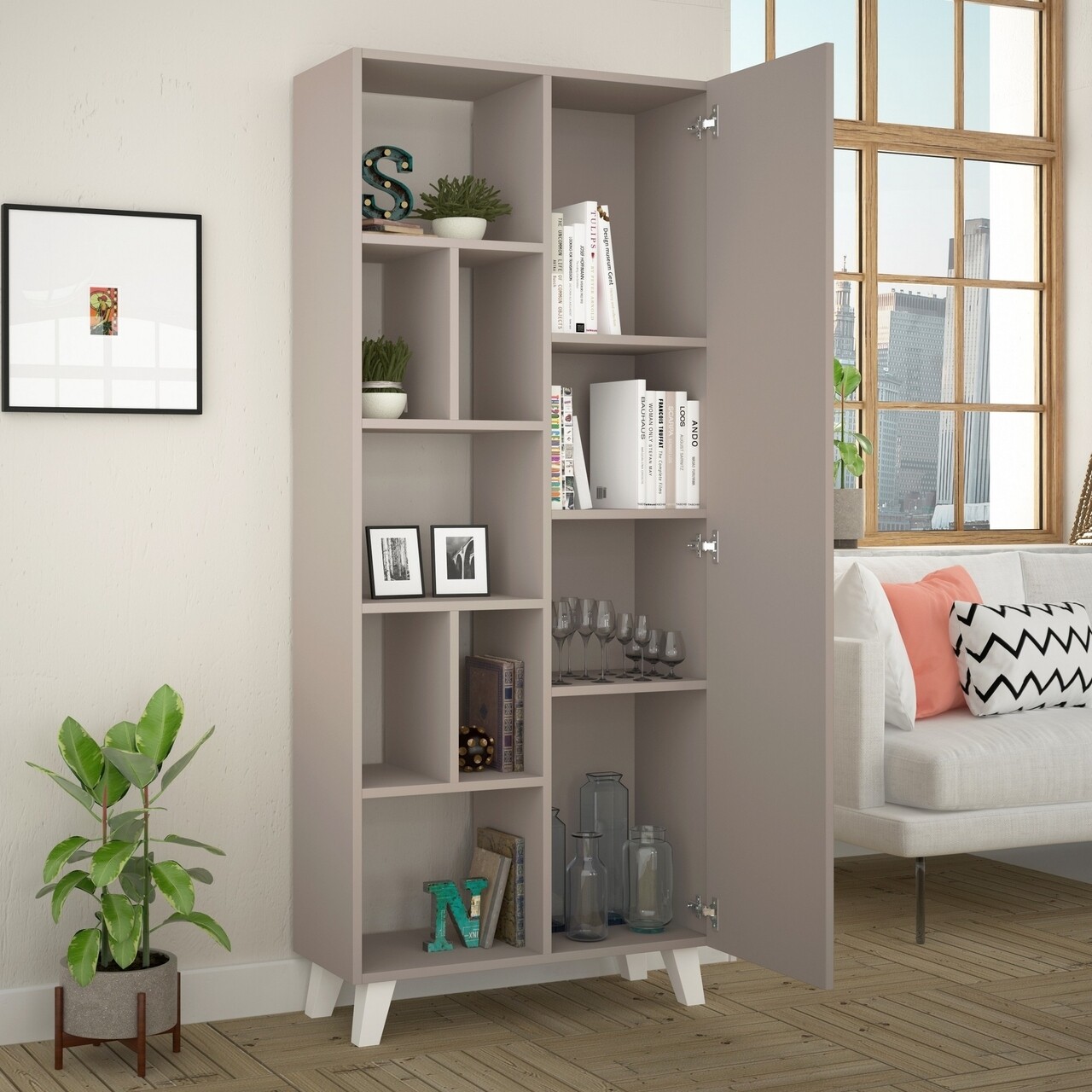 Biblioteca Salcisko, Decortie, 78x32x183 cm, gri deschis