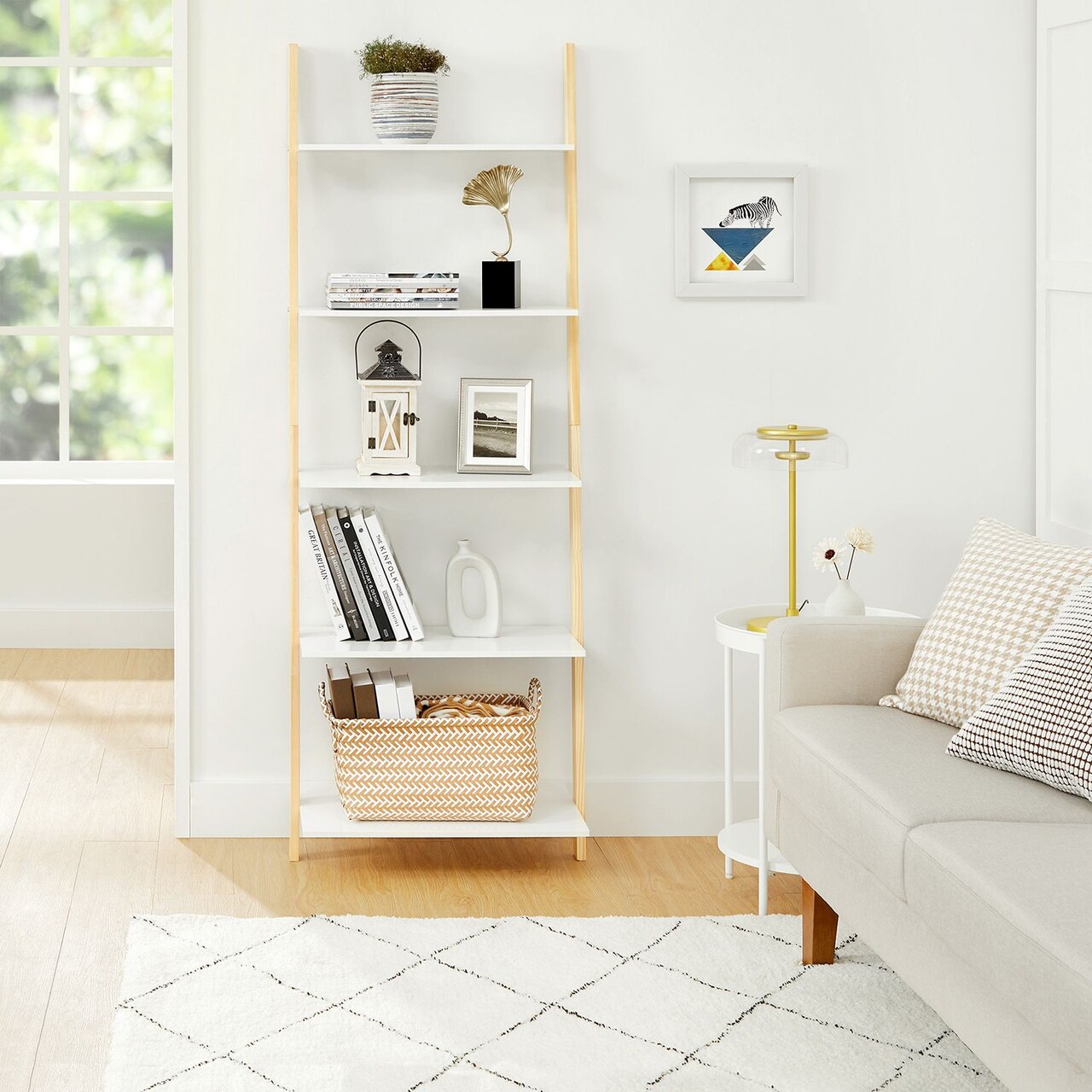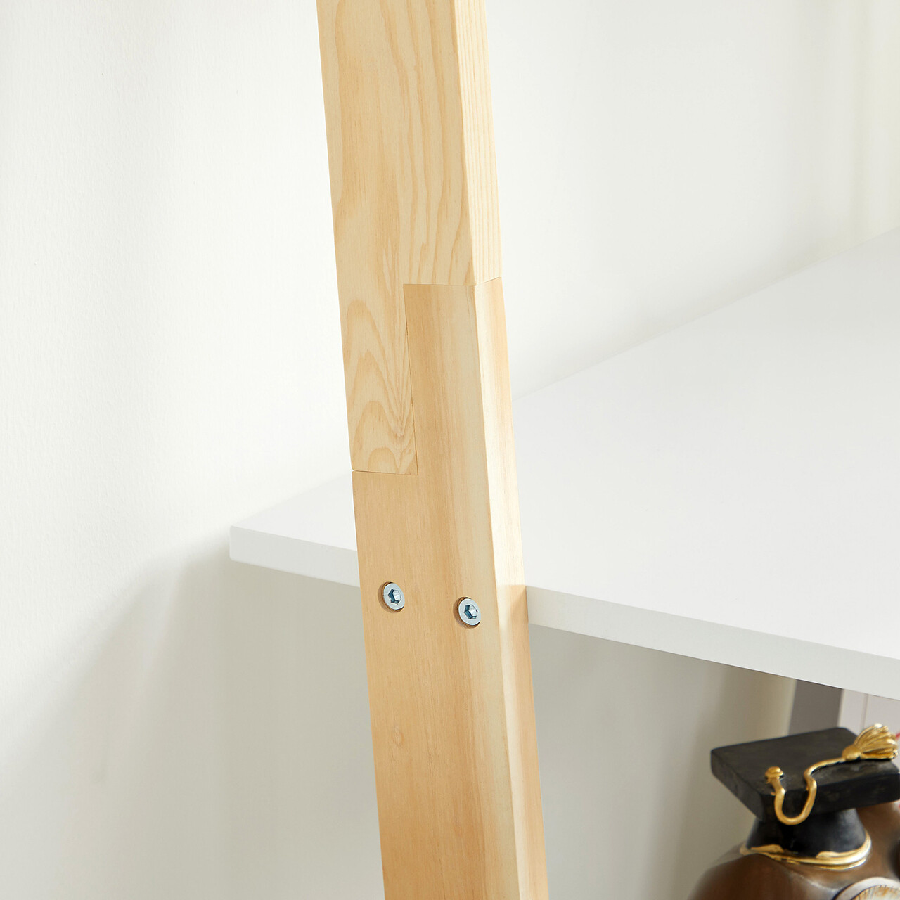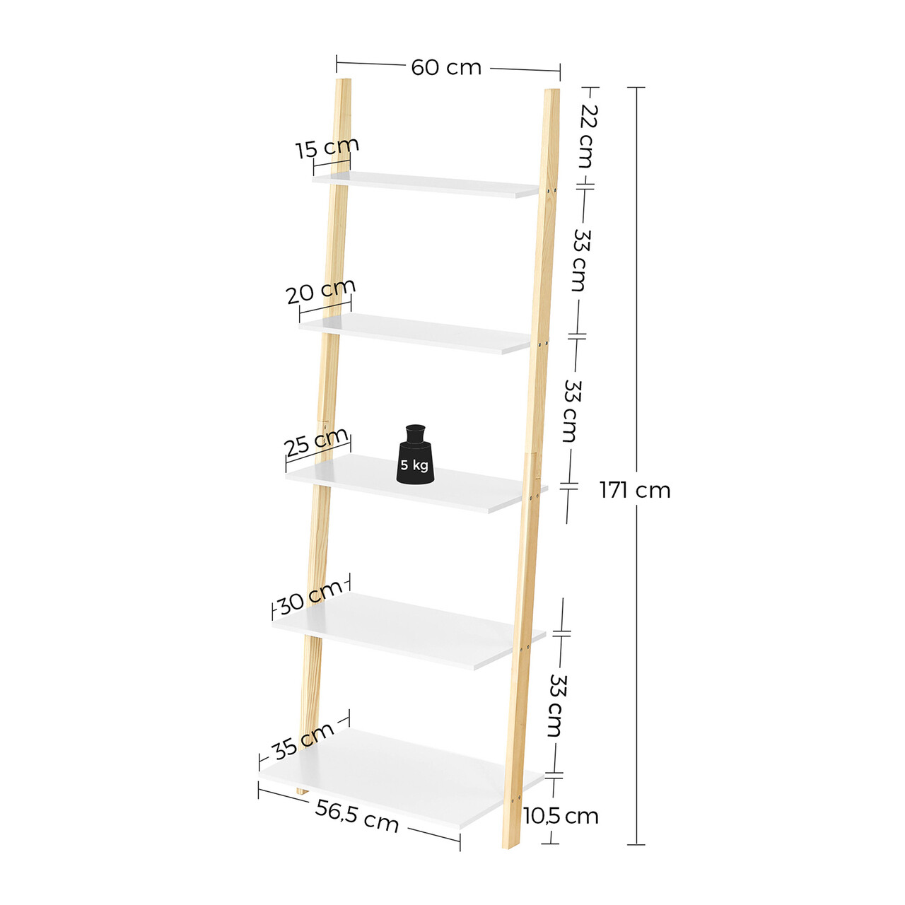 Biblioteca tip scara cu 5 rafturi Ladder, Vasalge, 60x35x171 cm, MDF/lemn de pin, alb mat/natural